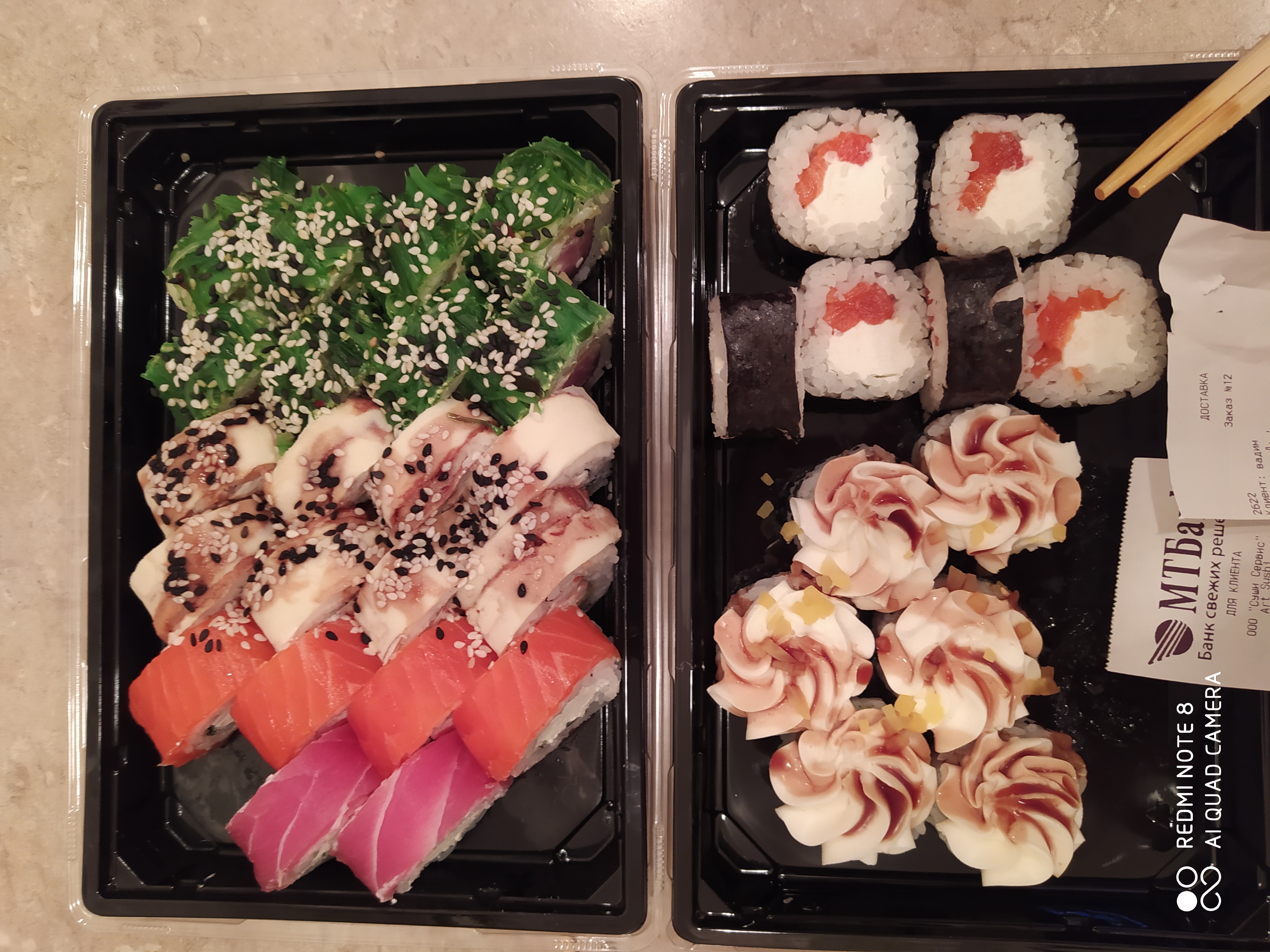 - Стоимость суши-сетов: от 32,90 р. от 58 р.