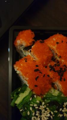- ролл "Сардиния": икра масаго оранж, сурими, крем-чиз, салат айсберг, нори, рис - 4 шт.