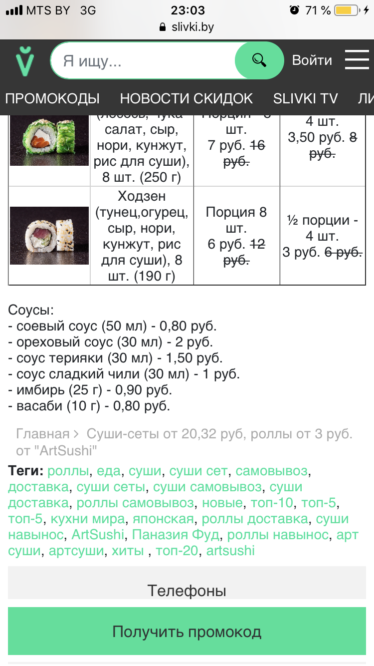 - Промокод дает право на скидку до 67% на суши-сеты от "ArtSushi"