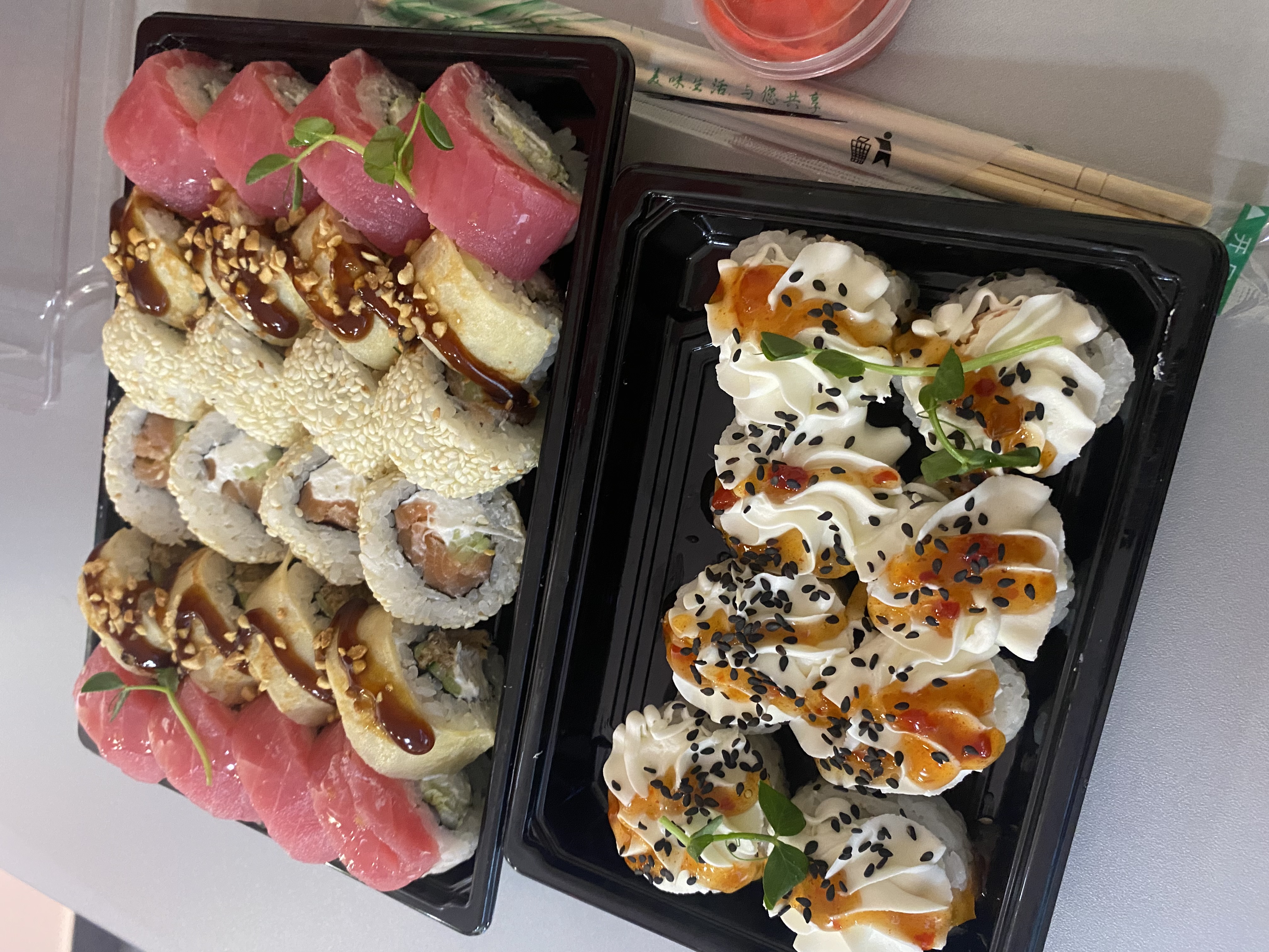 - Стоимость суши-сетов: от 32,90 р. от 58 р.