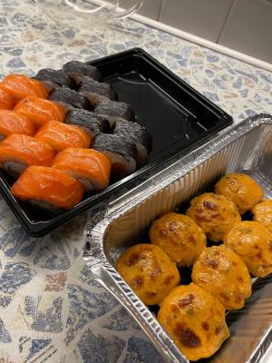 - гарнир: имбирь (40 г), соевый соус (40 мл), васаби (15 г) в подарок!