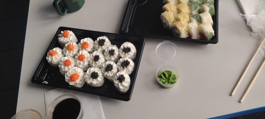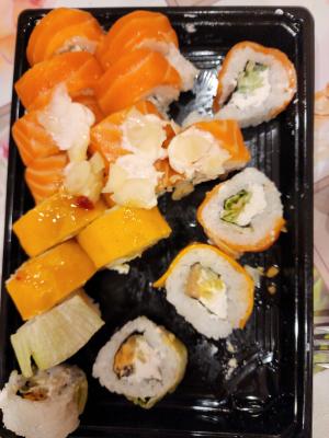 - гарнир: имбирь (40 г), соевый соус (40 мл), васаби (15 г) в подарок!