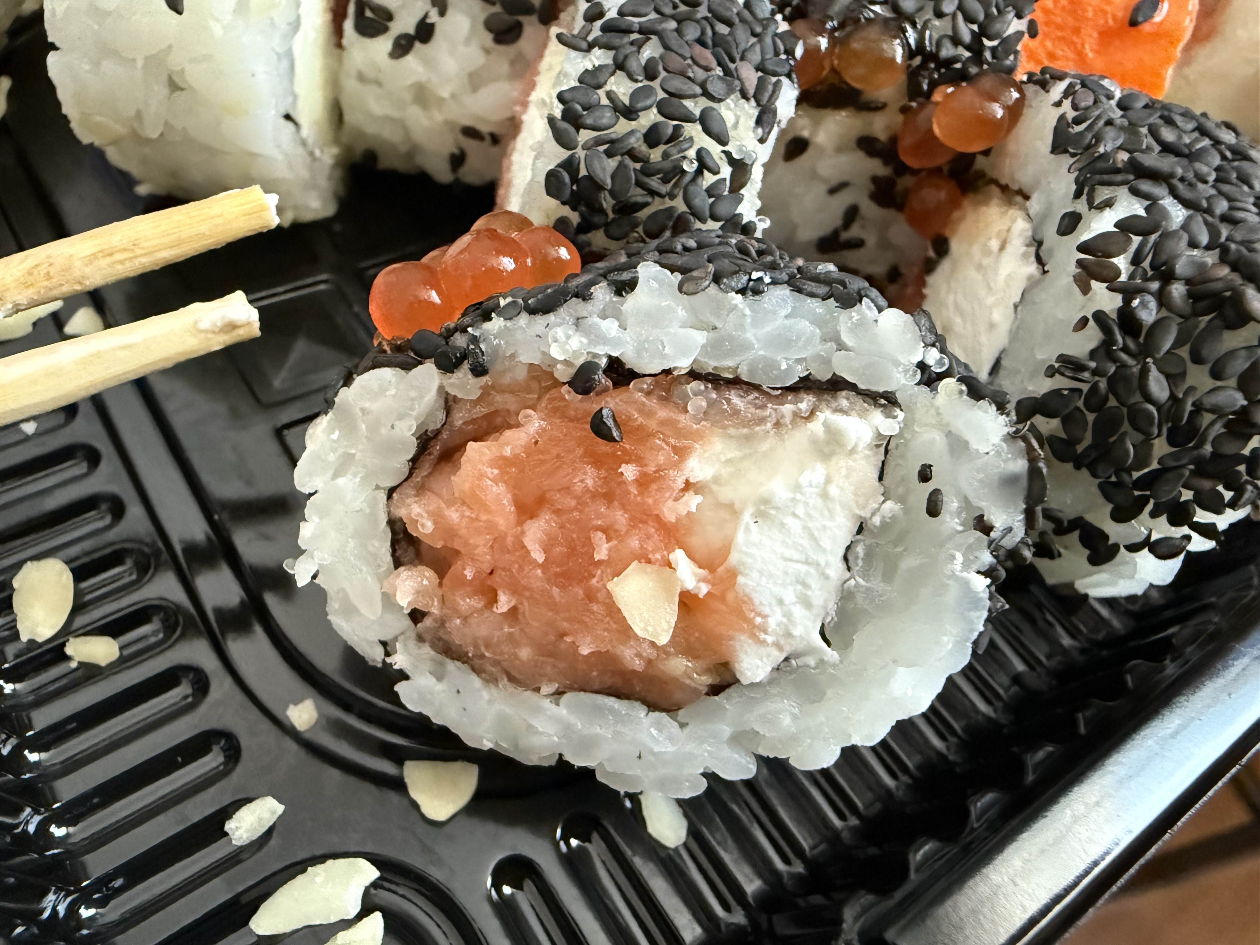 Состав: филе лосося (форели) слабосоленое, авокадо, крем-чиз, рис, нори