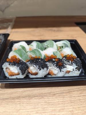 - ролл "Грин Эби Кроунинг": креветка тигровая, краб-микс, чука-салат, сыр, кунжут, нори, рис - 8 шт.