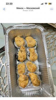 - ролл "Мидии терияки под сырной шапочкой": мидии, морковь терияки, кунжут, крем-сыр, соус терияки, нори, рис - 8 шт.