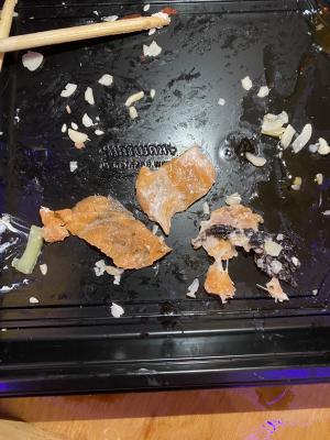 - ролл «В опаленном беконе с тунцом»: тунец, салат айсберг, сыр, бекон опаленный, соус терияки, кунжут, нори, рис – 8 шт.