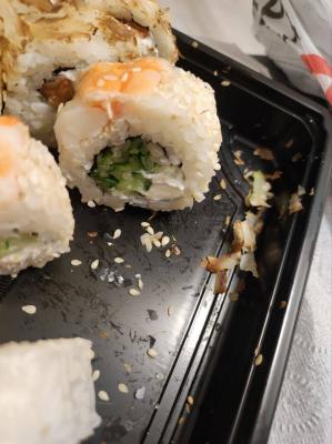 Состав: тигровая креветка, авокадо, огурец, сыр, рис, нори