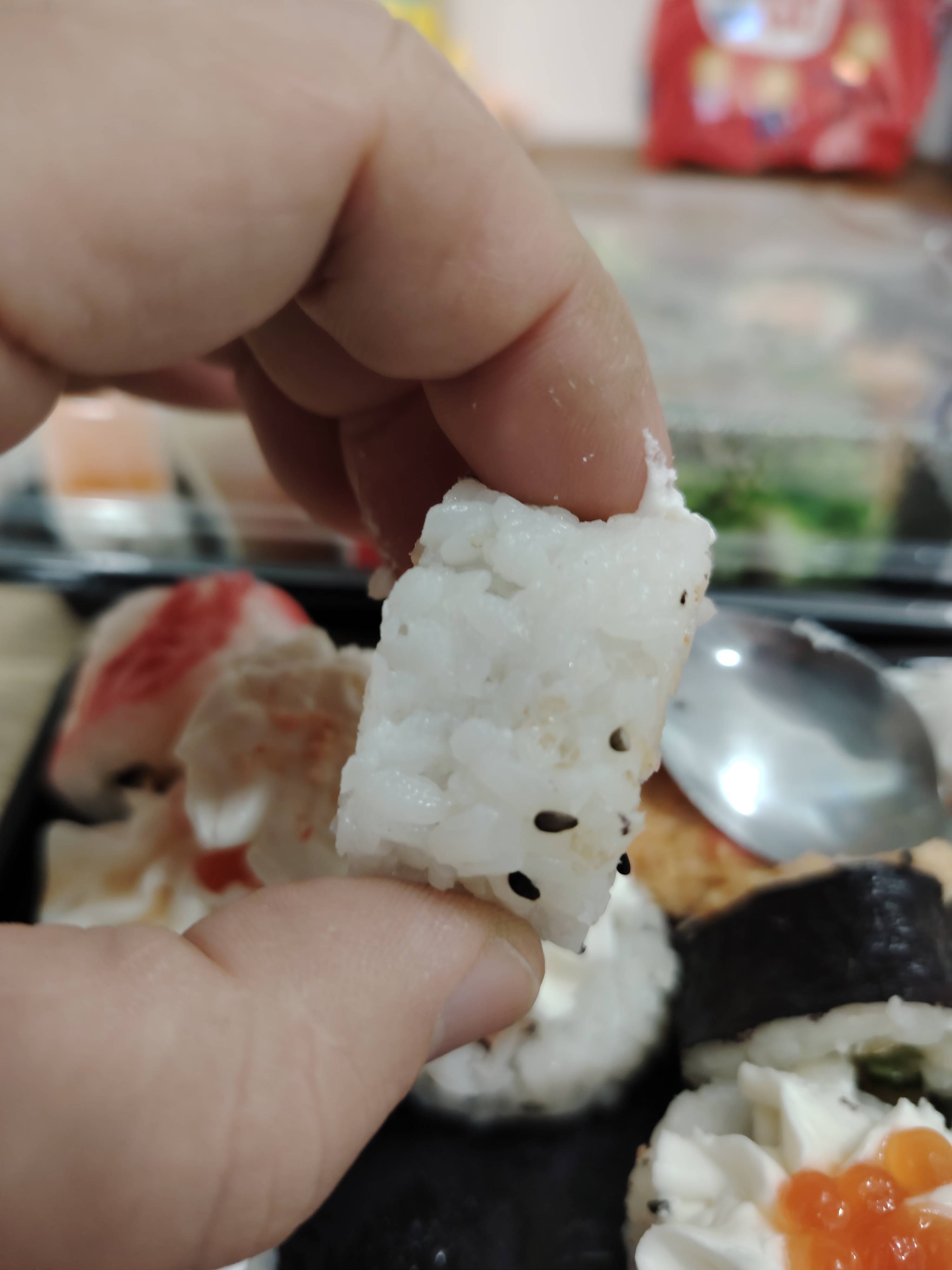 Брали сет "на пикник" на новый год. Съели пару штук,отвратительно. Весь рис цельным комком,не рассыпчатый, безвкусный. Соусы не помогли. Пришлось выбросить