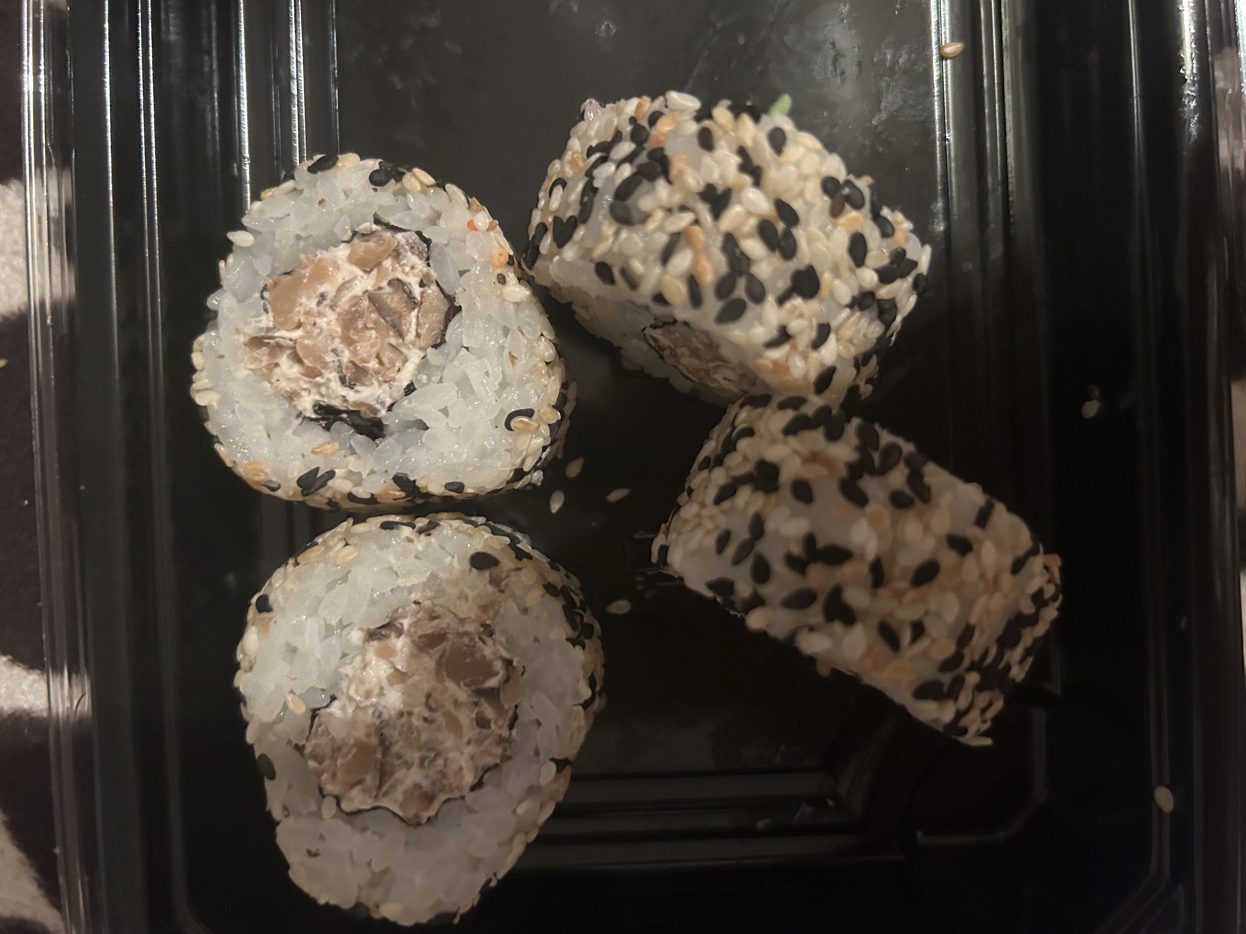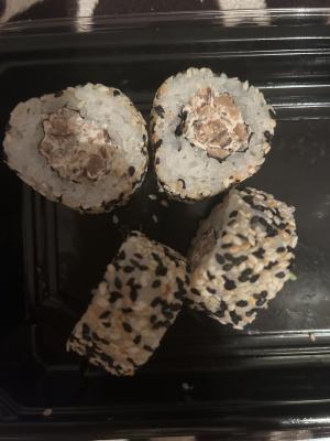 Состав: тунец, такуан, сыр, нори, рис, темпура