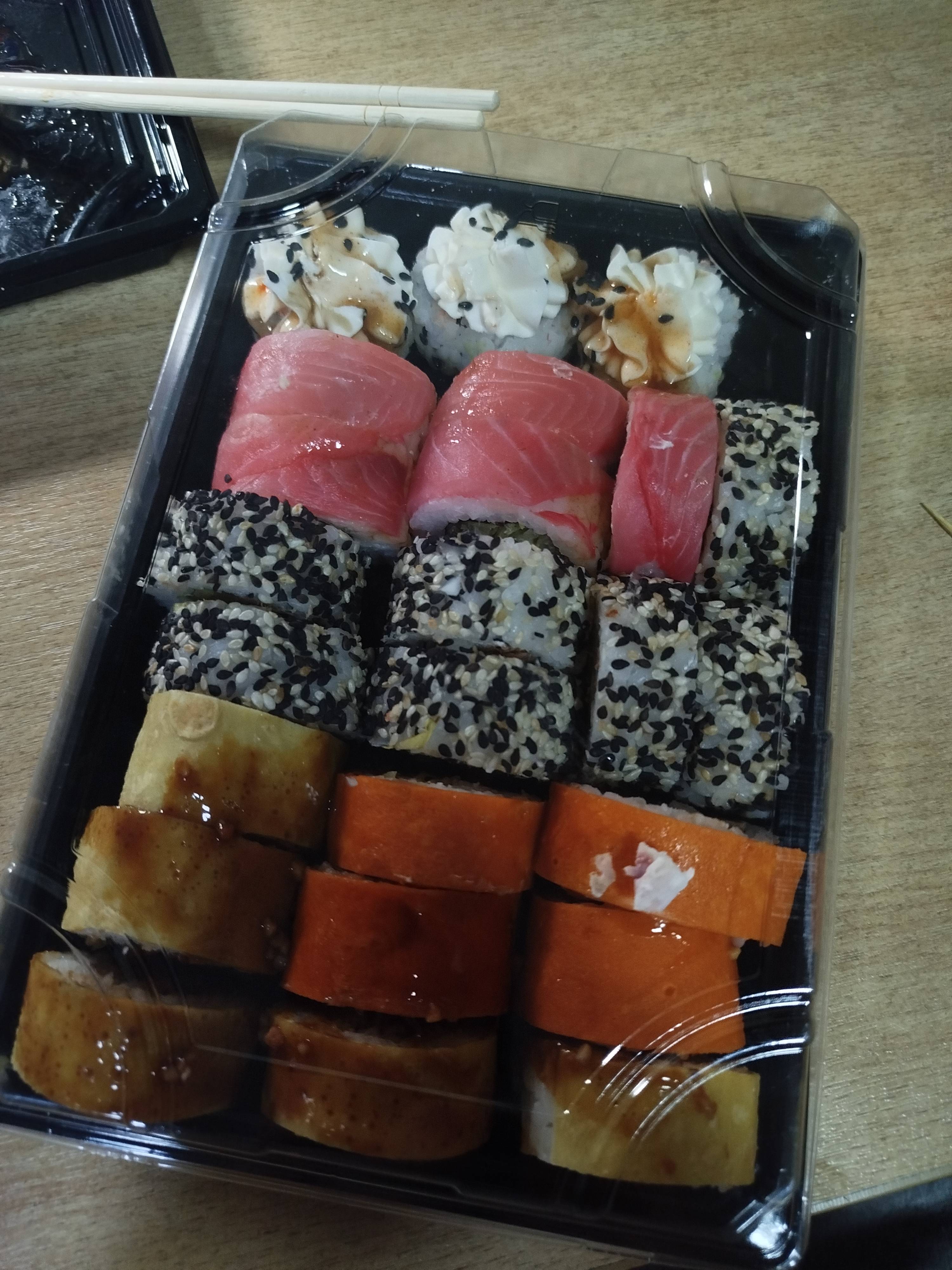- Стоимость суши-сетов: от 32,90 р. от 58 р.