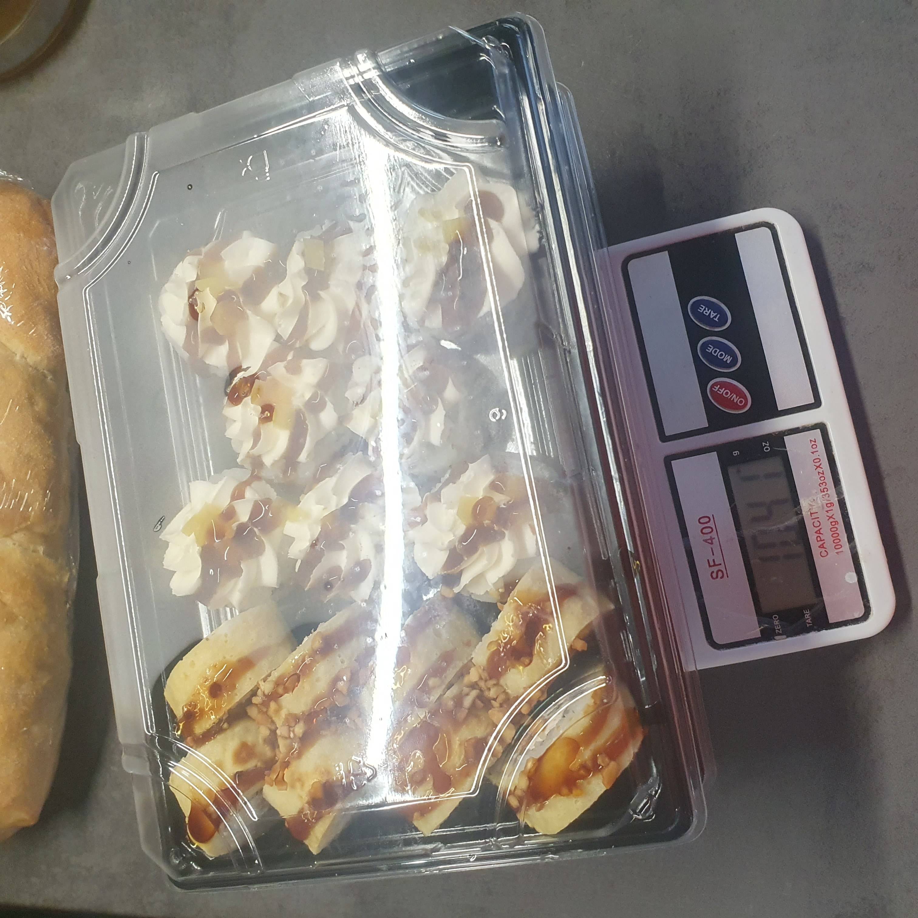 - ролл "Мидии терияки под сырной шапочкой": мидии, морковь терияки, кунжут, крем-сыр, соус терияки, нори, рис - 8 шт.