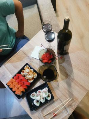 - гарнир: имбирь (40 г), соевый соус (40 мл), васаби (15 г) в подарок!