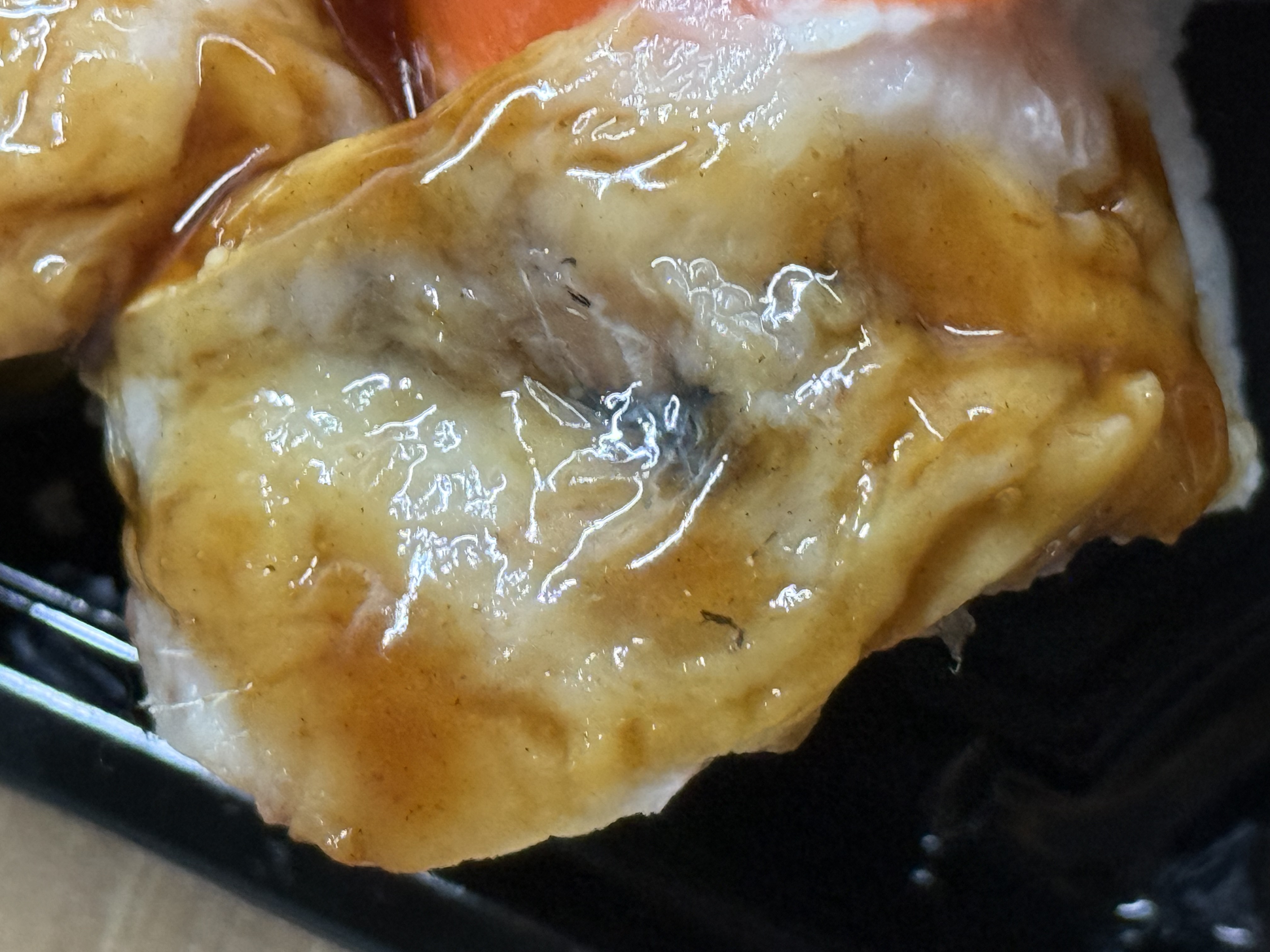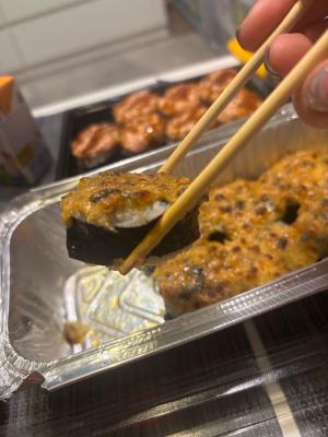 - ролл "Мидии терияки под сырной шапочкой": мидии, морковь терияки, кунжут, крем-сыр, соус терияки, нори, рис - 8 шт.