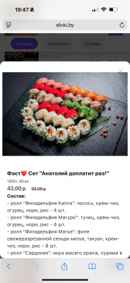 - сет "Анатолий доплатит!" (48 шт, 1460 г): 39,90 р. 135 р.