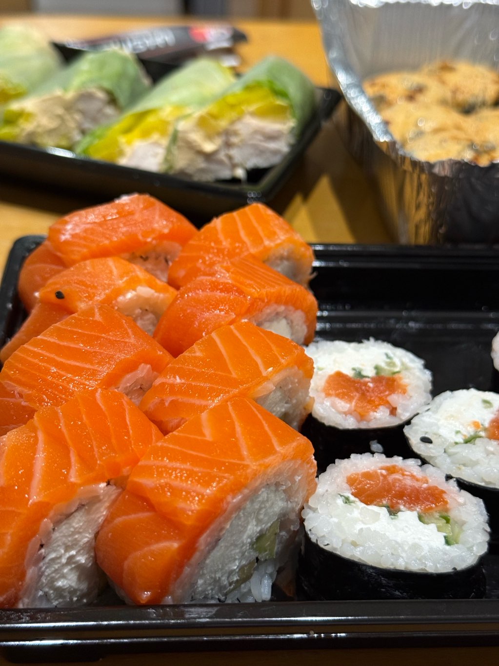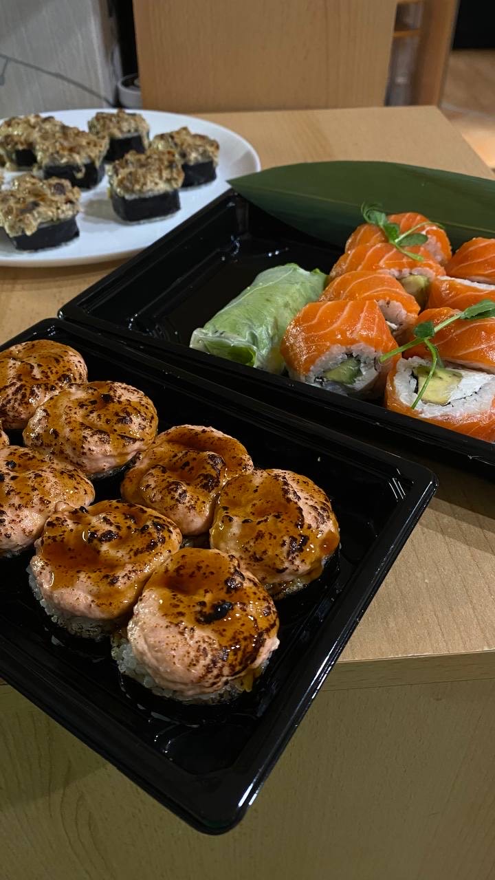 Состав: филе лосося, угорь, креветка тигровая, авокадо, огурец, сыр, рис, нори