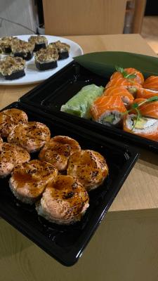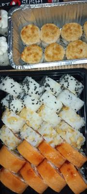- гарнир: имбирь (40 г), соевый соус (40 мл), васаби (15 г) в подарок!