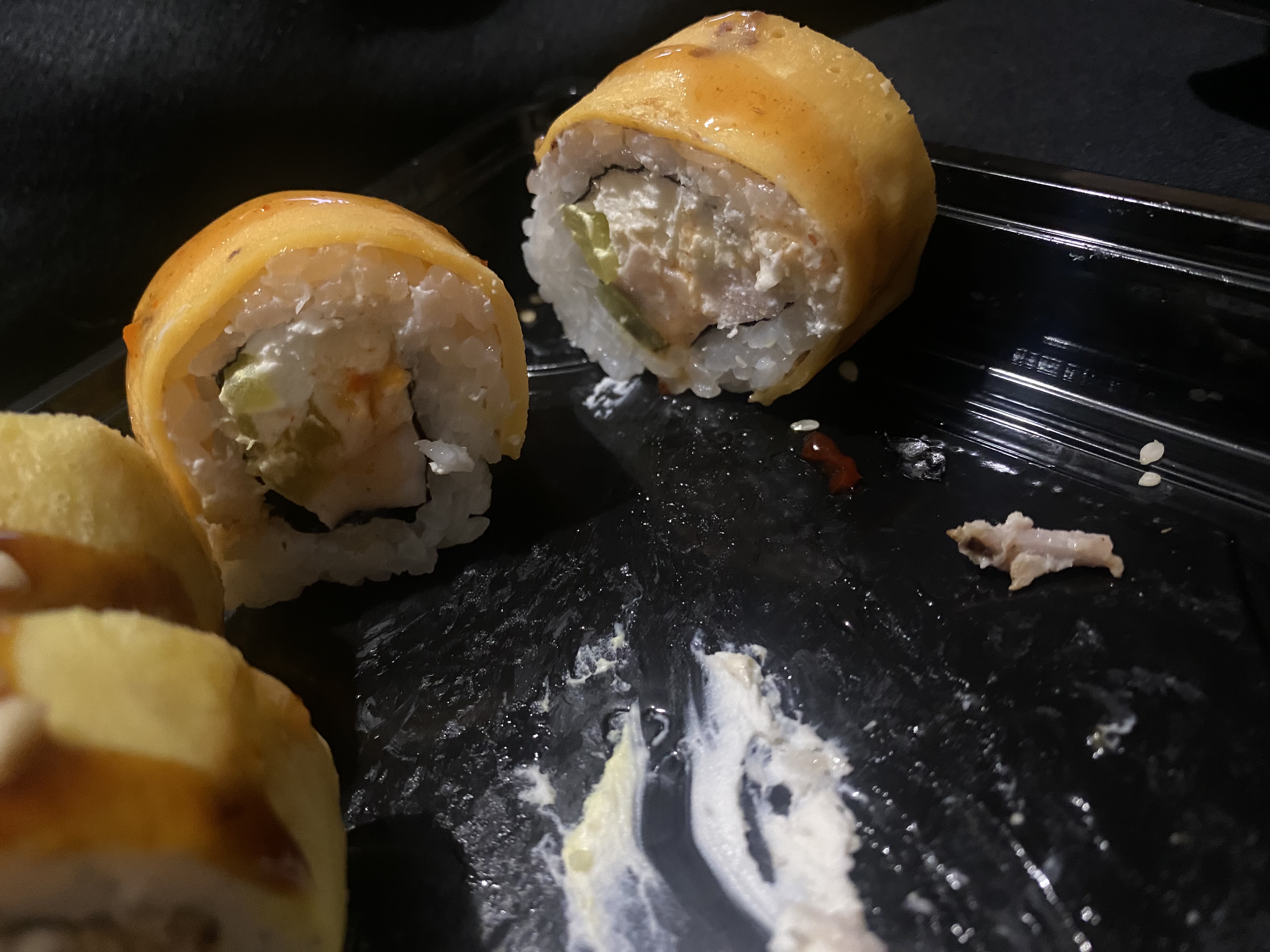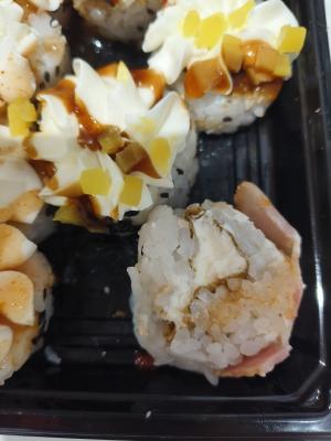 Состав: тунец, такуан, сыр, нори, рис, темпура