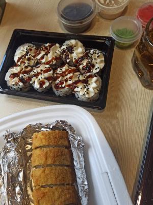 - гарнир: имбирь (40 г), соевый соус (40 мл), васаби (15 г) в подарок!