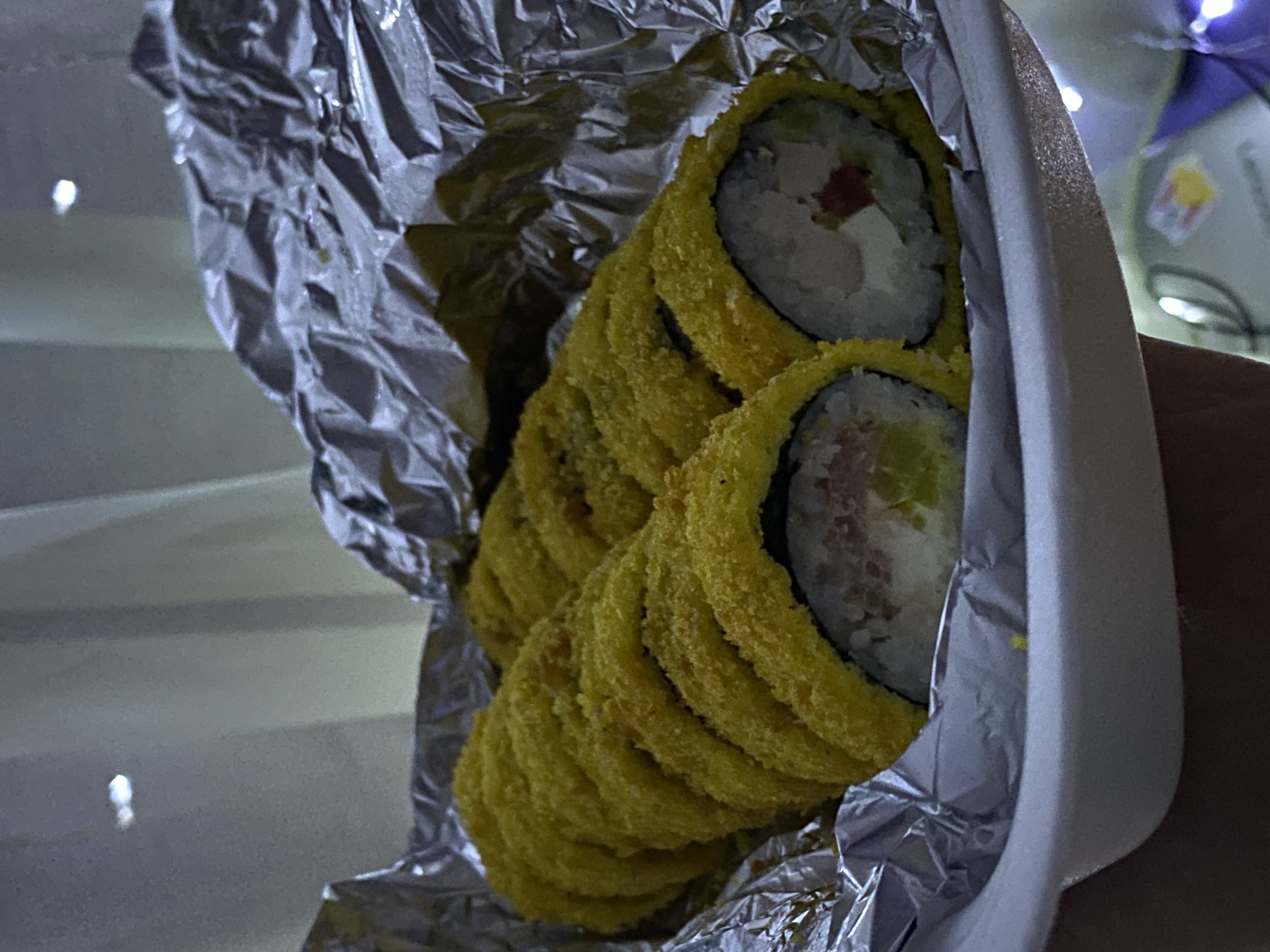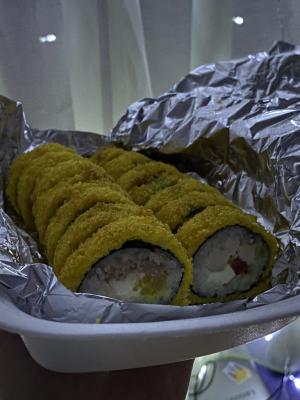 Состав: тунец, такуан, сыр, нори, рис, темпура