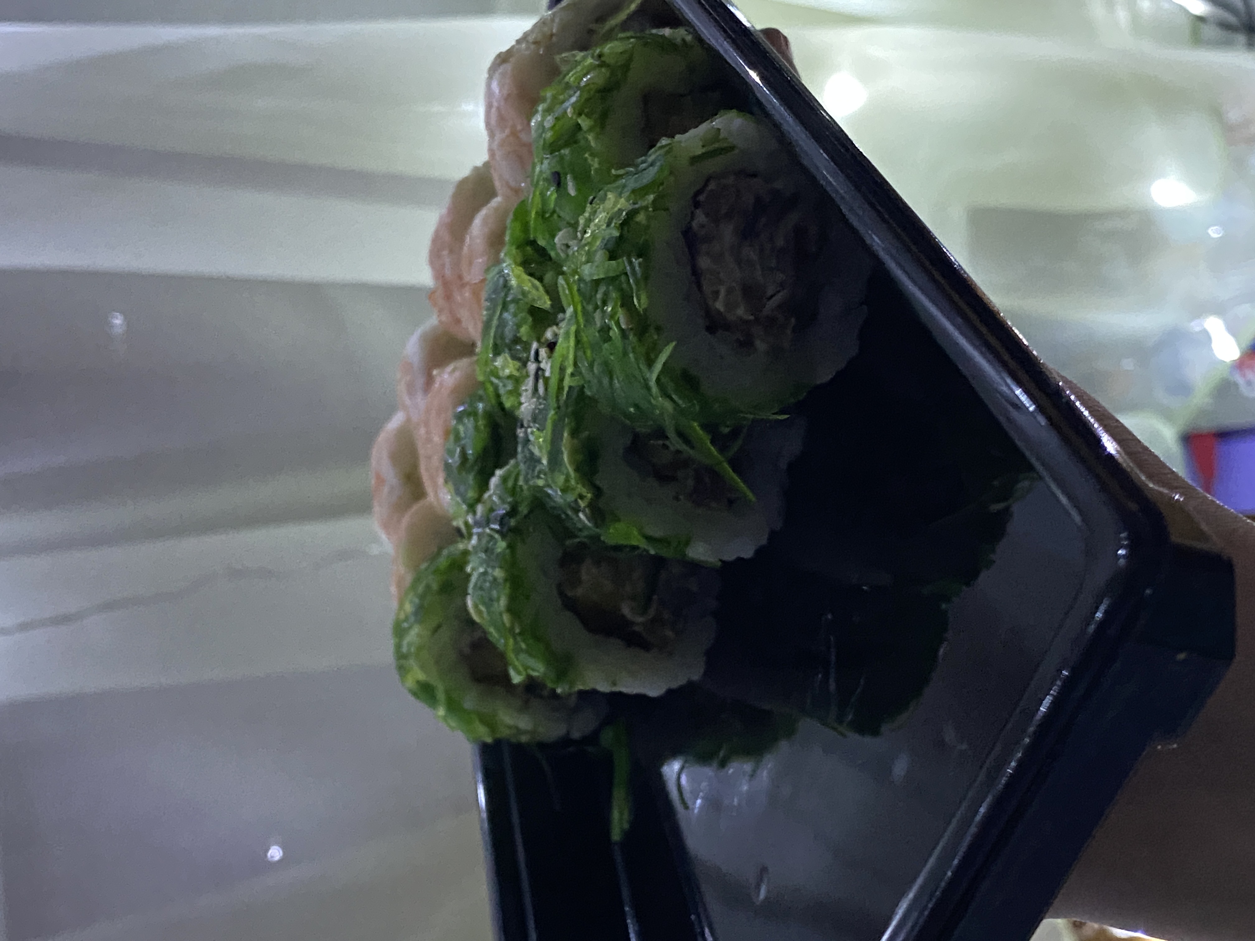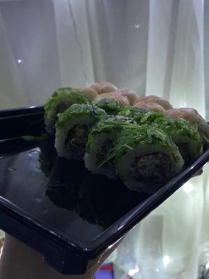 - ролл "Грин Эби Кроунинг": креветка тигровая, краб-микс, чука-салат, сыр, кунжут, нори, рис - 8 шт.
