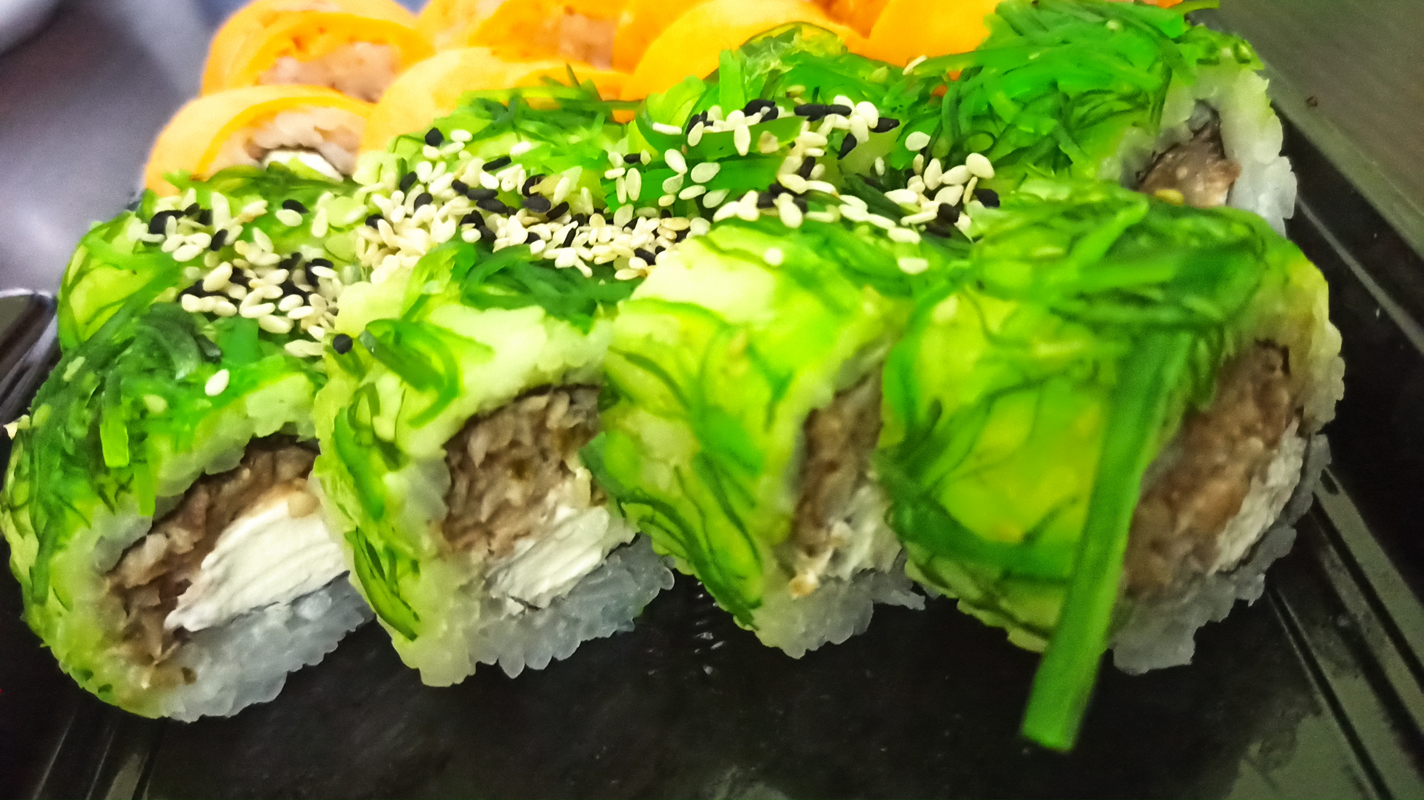 - ролл "Грин Эби Кроунинг": креветка тигровая, краб-микс, чука-салат, сыр, кунжут, нори, рис - 8 шт.