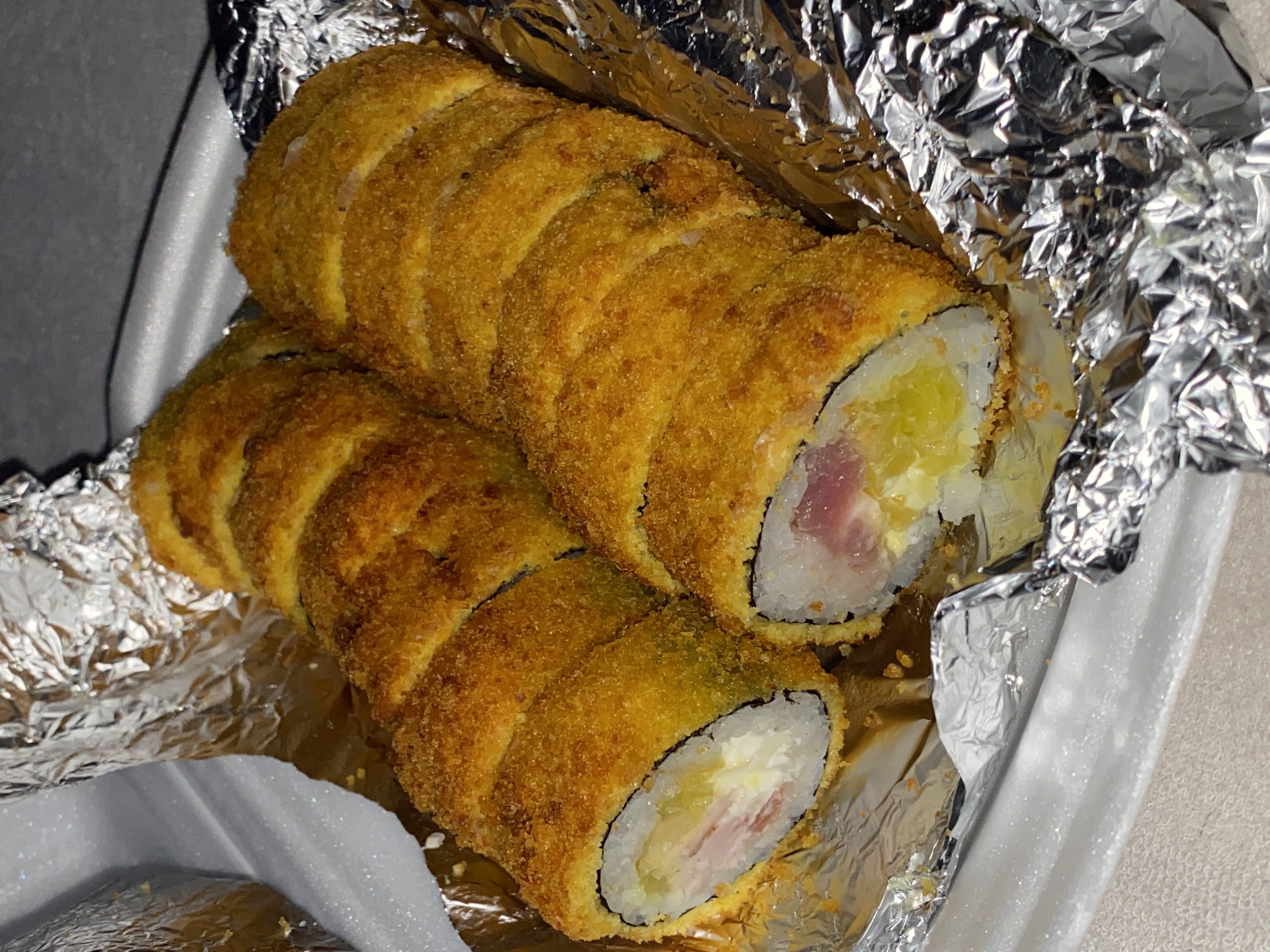 Состав: тунец, такуан, сыр, нори, рис, темпура