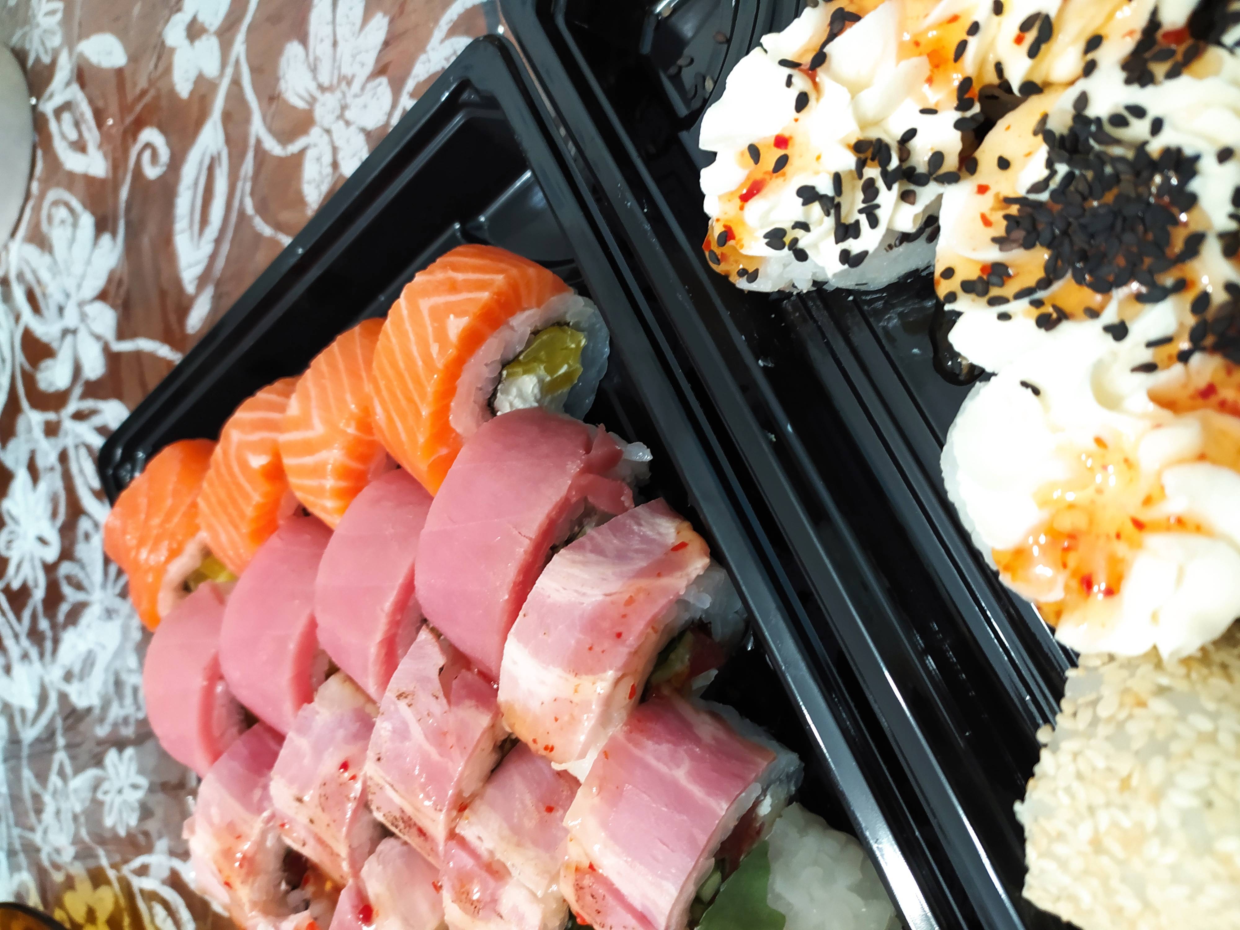 - Стоимость суши-сетов: от 32,90 р. от 58 р.