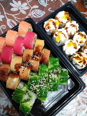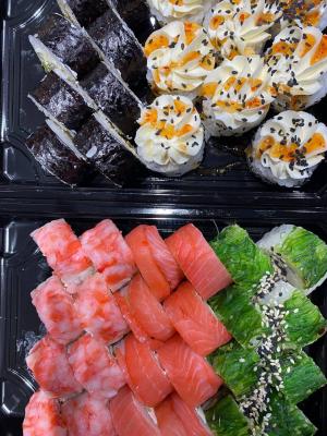 Заказываем суши самовывозом уже 5 или 6ой раз. Начинки много,роллы свежие и вкусные. Ребята,большое спасибо за вашу работу. Продолжайте нас радовать вкусными роллами)
