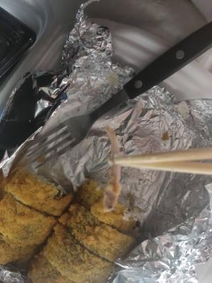 - ролл "Крем-шитаке в японском блинчике": грибы шиитаке, обжаренные в соусе терияки, крем-чиз, японский блинчик оранж, такуан, соус терияки, арахис, нори, рис - 8 шт.