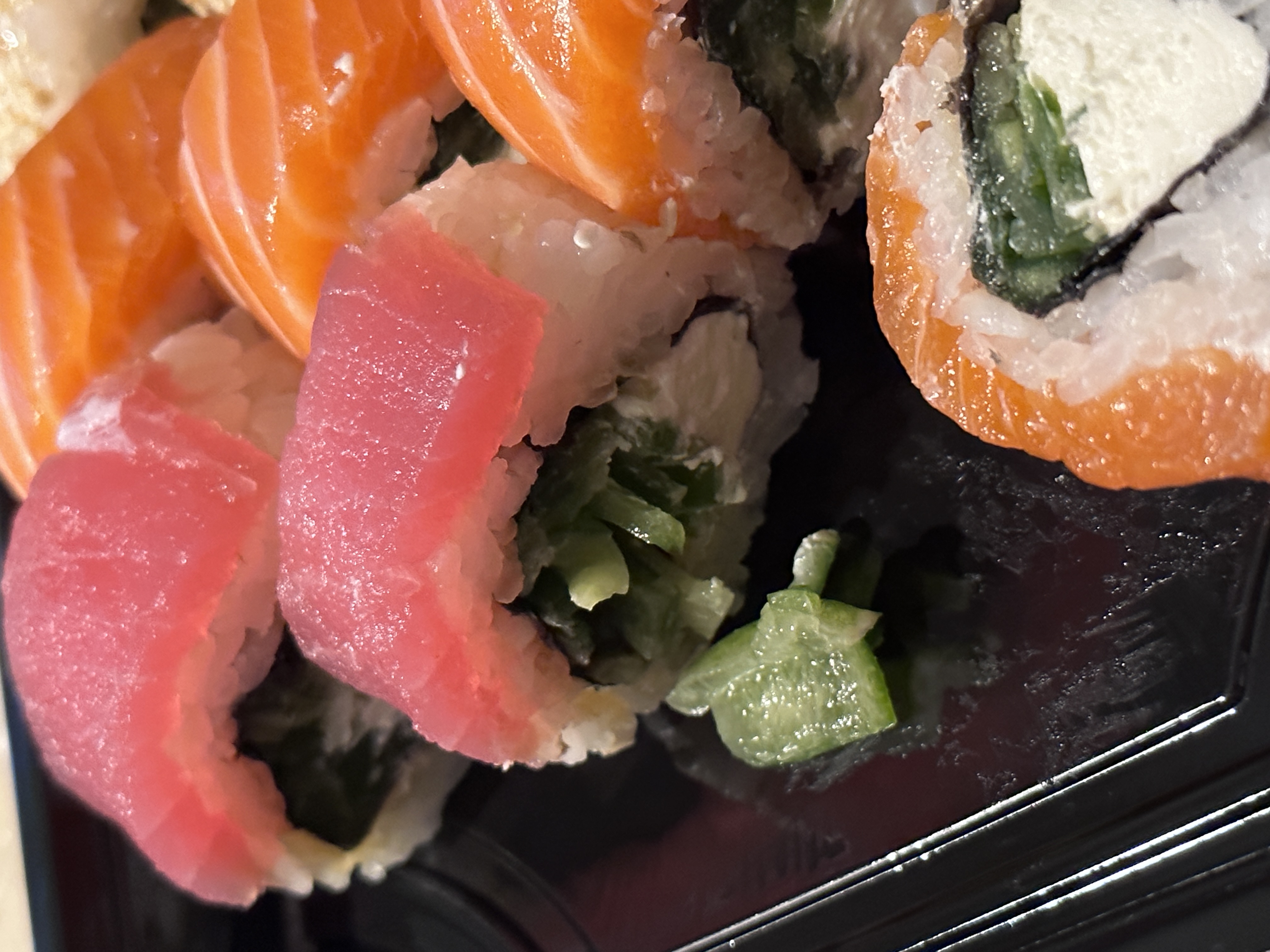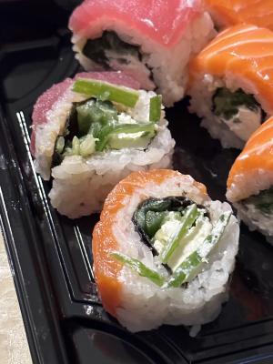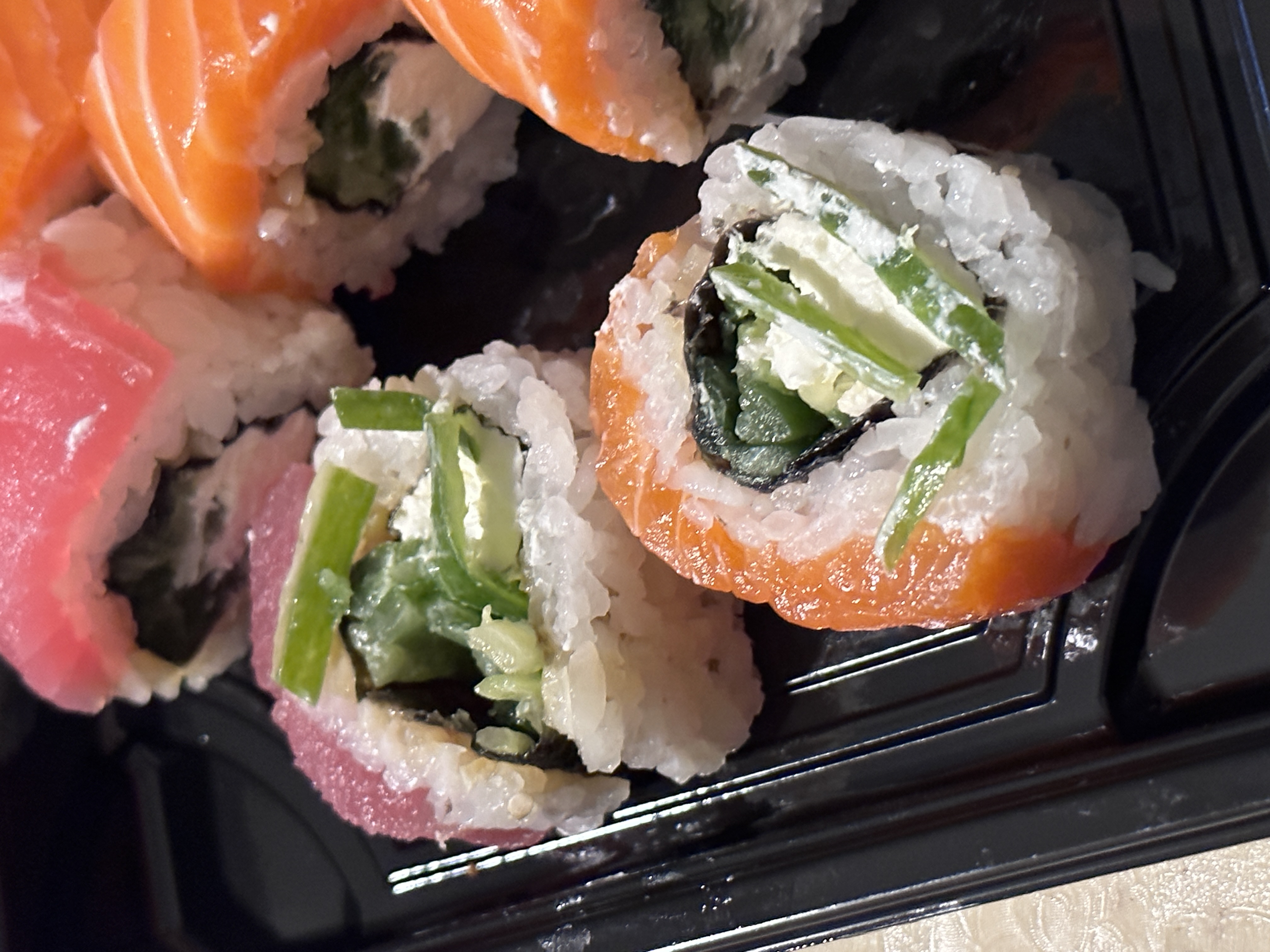 Состав: филе лосося (форели) слабосоленое, авокадо, крем-чиз, рис, нори
