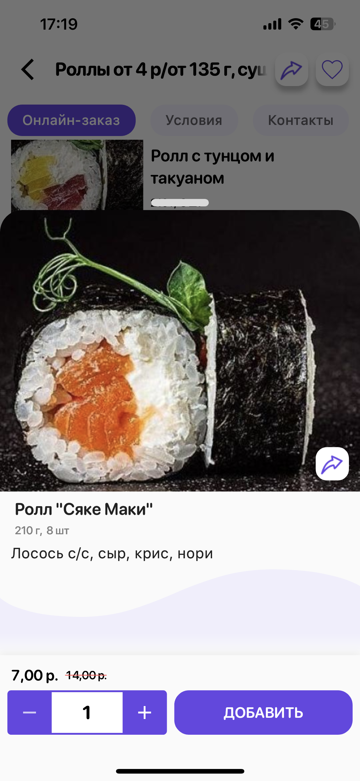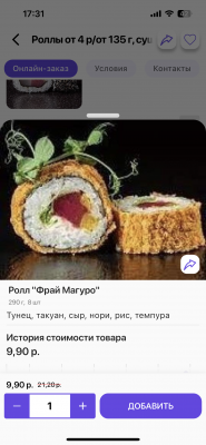 - Стоимость суши-сетов: от 32,90 р. от 58 р.