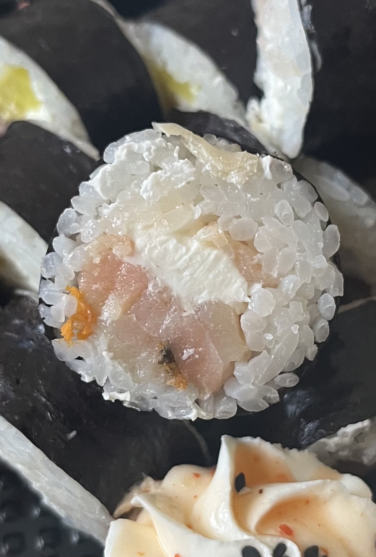 Состав: филе лосося (форели) слабосоленое, авокадо, крем-чиз, рис, нори