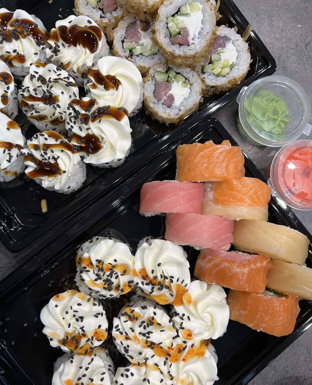 - гарнир: имбирь (25 г), соевый соус (40 мл), васаби (15 г) в подарок!