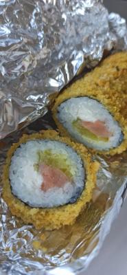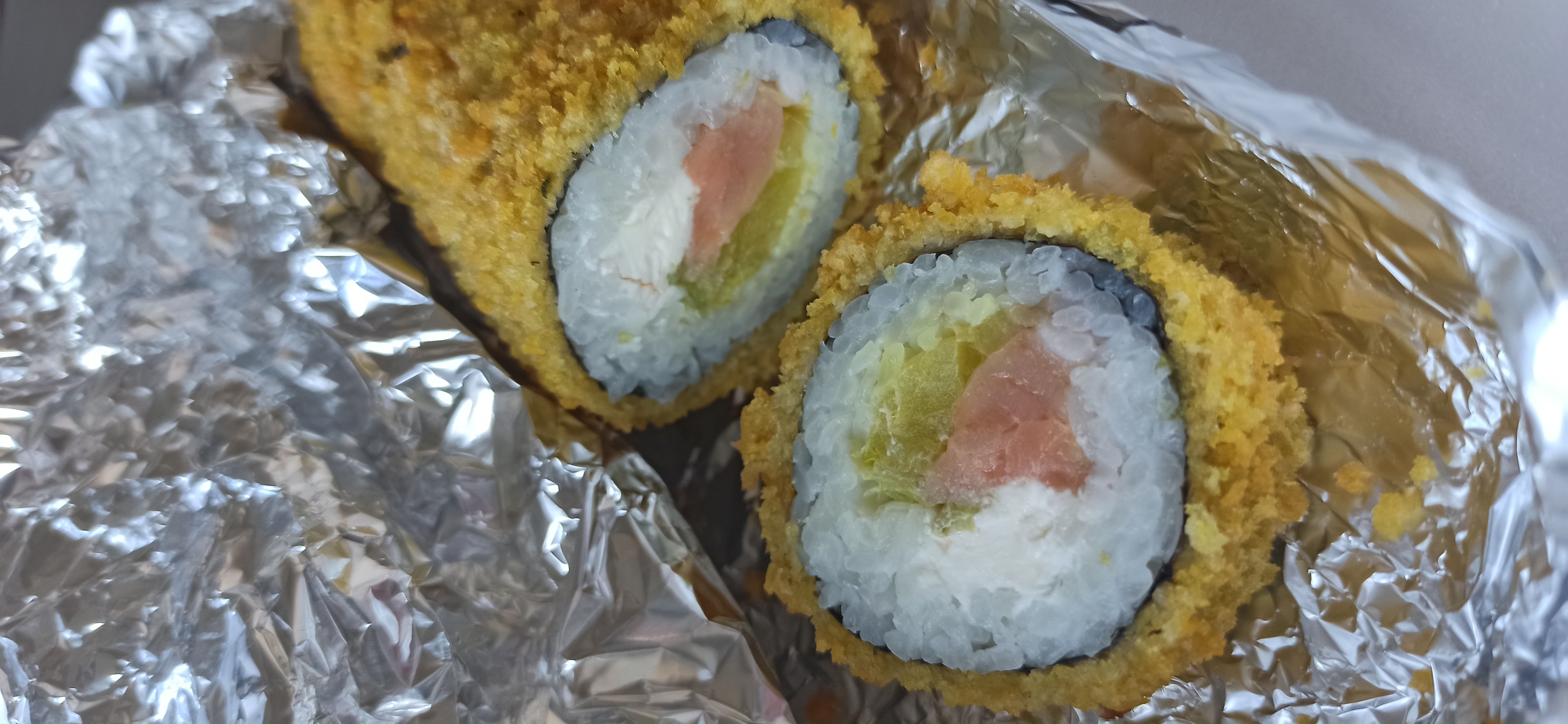 Состав: тунец, такуан, сыр, нори, рис, темпура