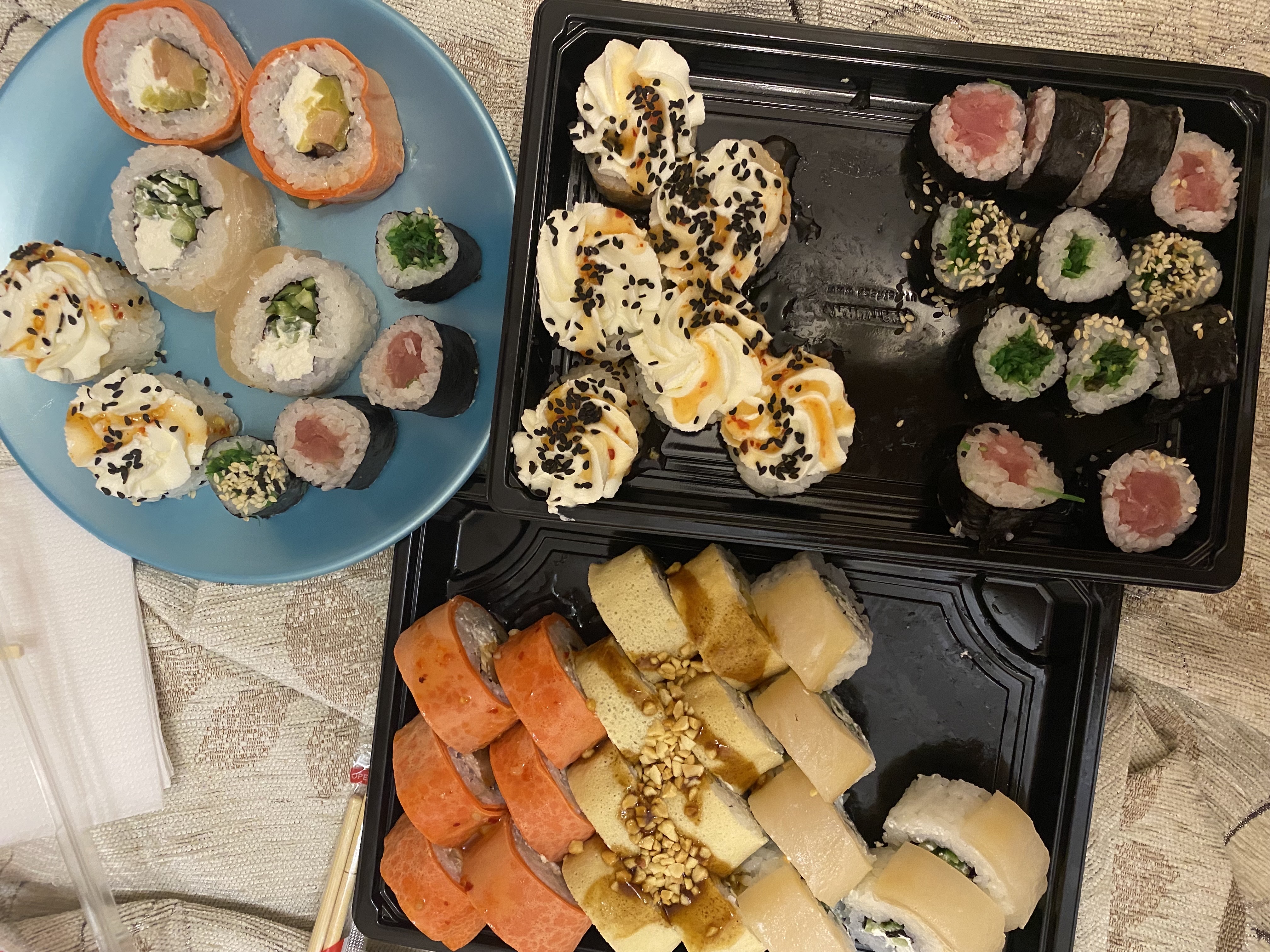 - По предзаказу на 31.12 не принимаются сеты: "Анатолий доплатит", "Анатолий доплатит 3", "Темпура", "Большой", "Гонконг", "Вот Дают Артсуши", "Темпура Микс 2", Сет Двойной, Том ям, Поке, Креветка Темпура, Дог-роллы.