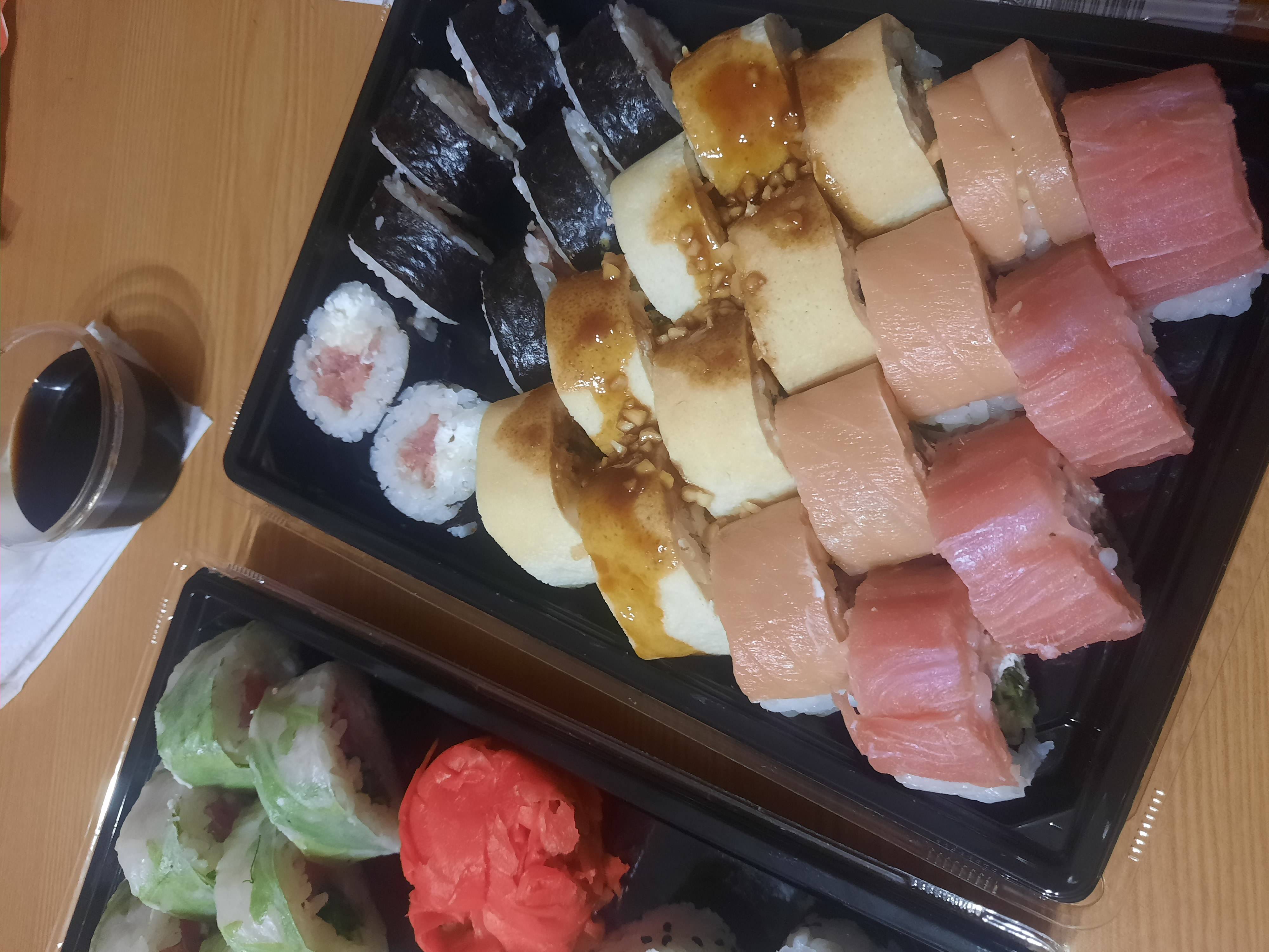 - гарнир: имбирь (25 г), соевый соус (40 мл), васаби (15 г) в подарок!