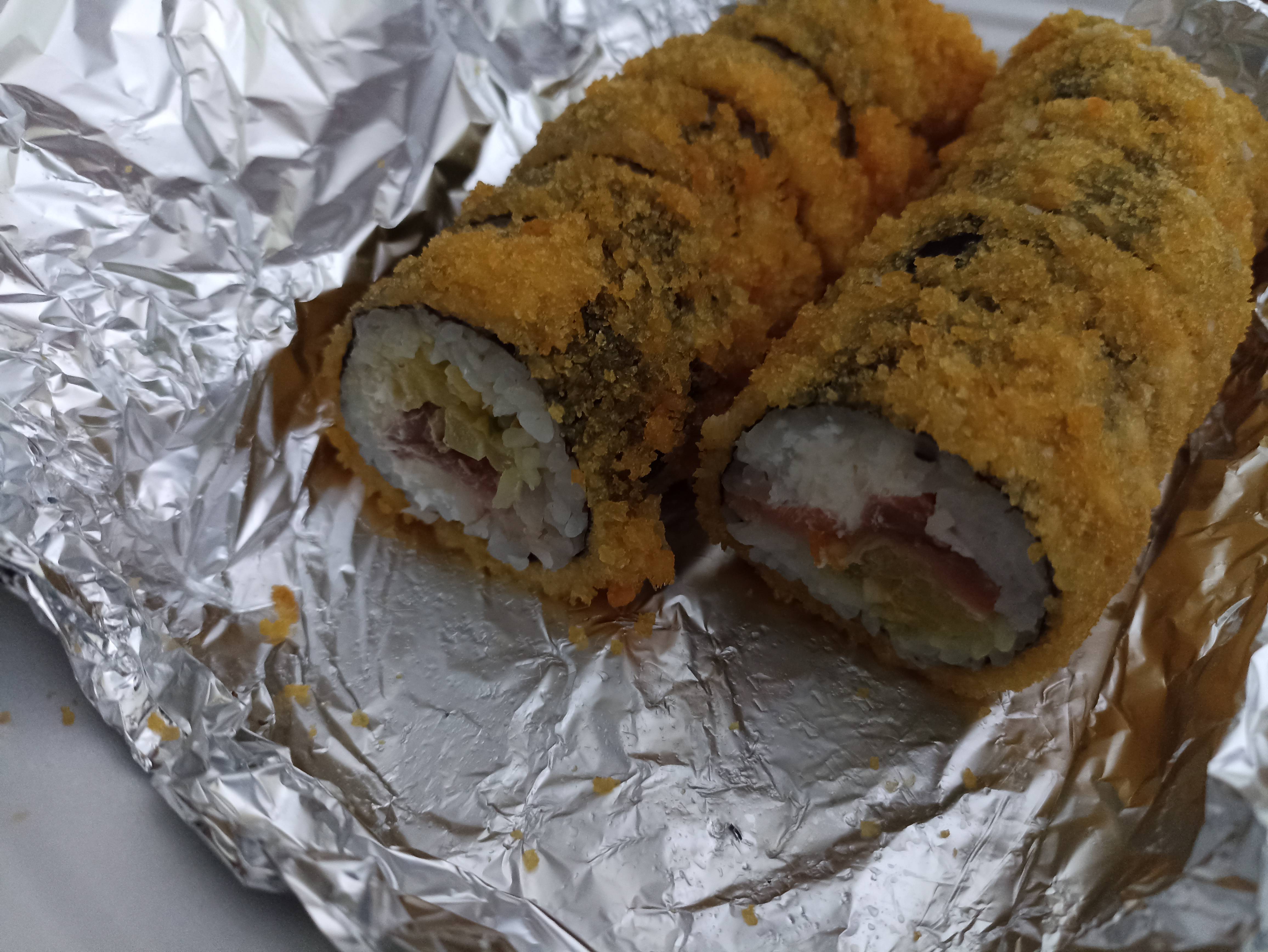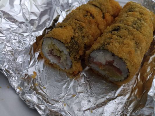 Состав: тунец, такуан, сыр, нори, рис, темпура