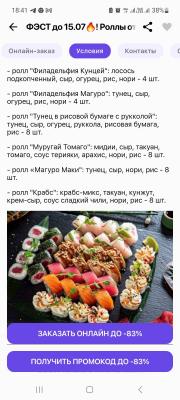 - Промокод дает право на скидку до 61% на суши-сеты от "ArtSushi"