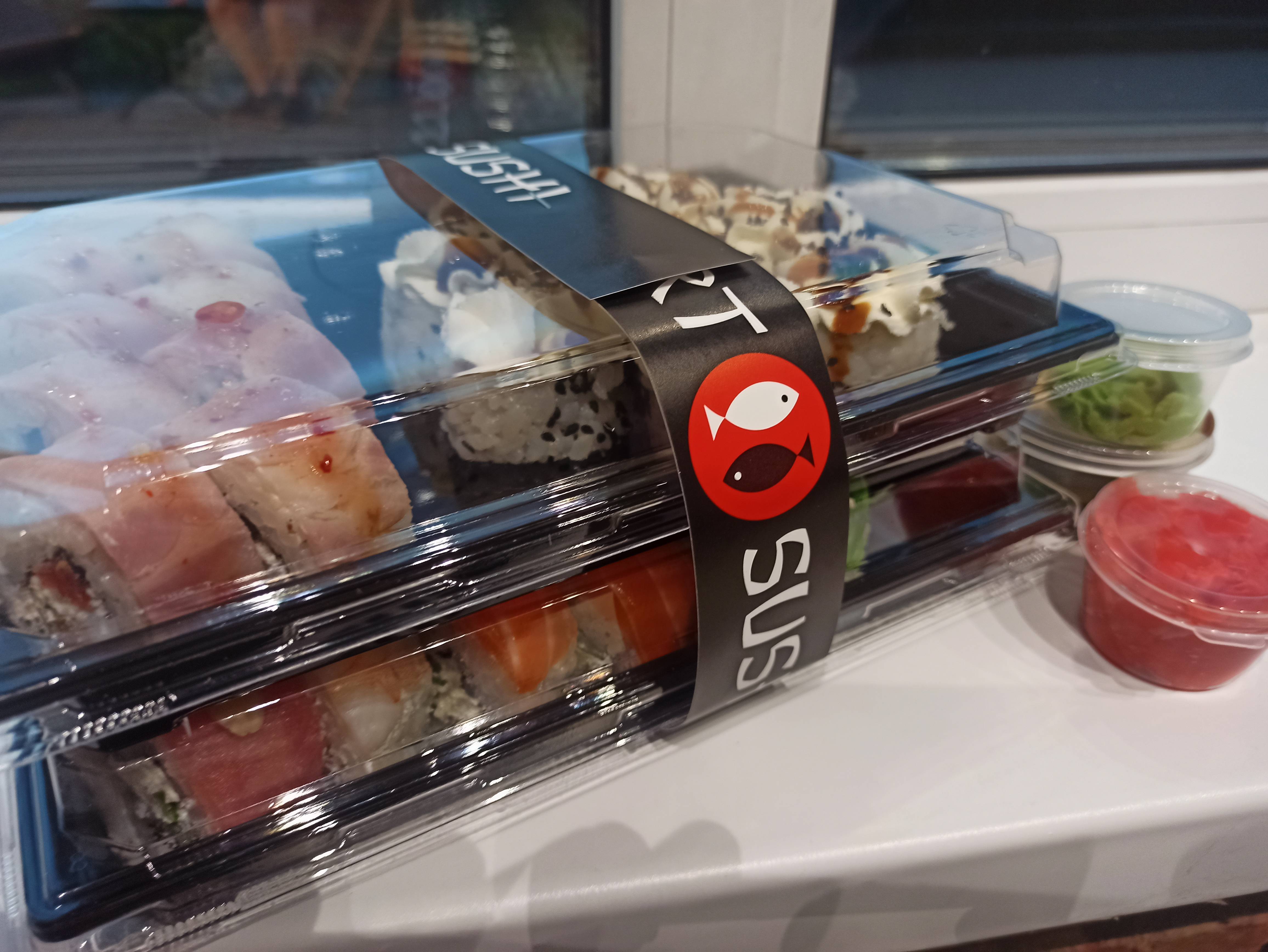 - гарнир: имбирь (25 г), соевый соус (40 мл), васаби (15 г) в подарок!