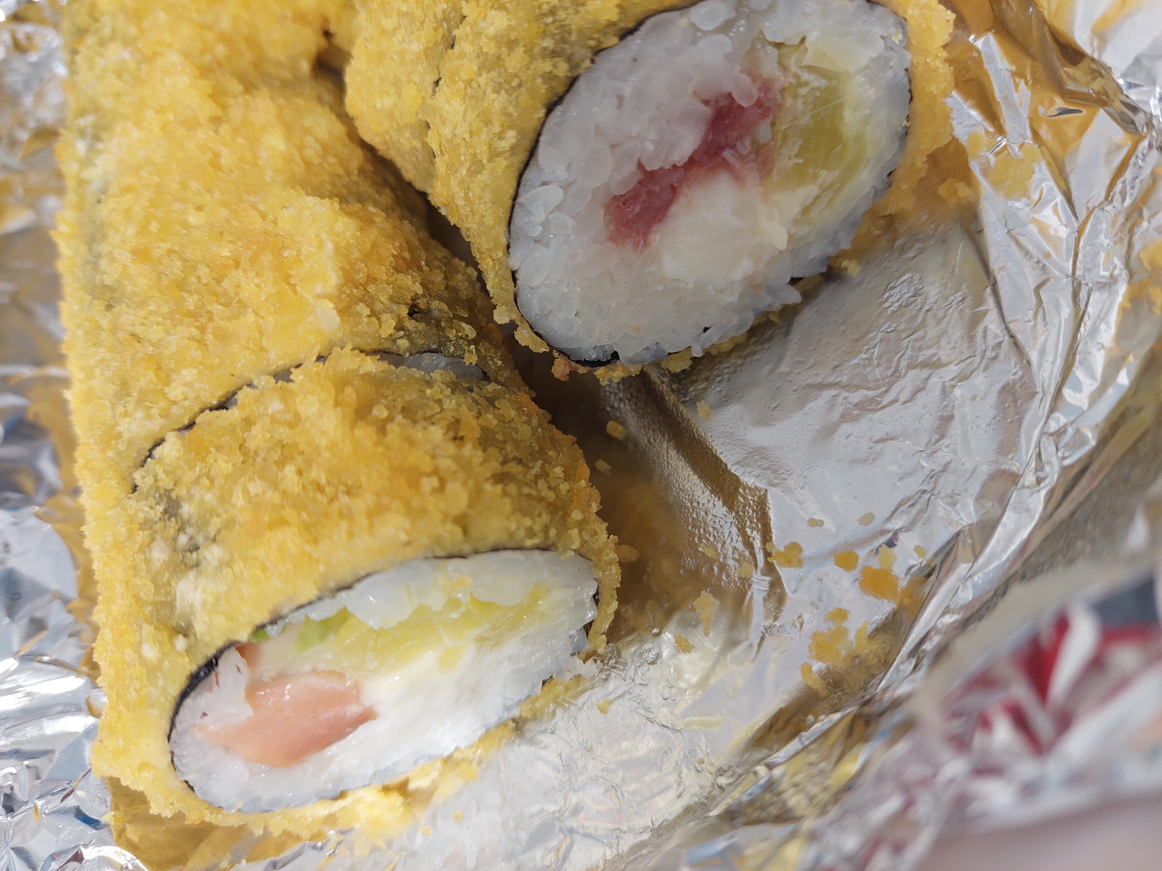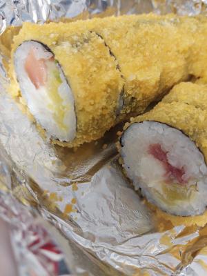 Состав: тунец, такуан, сыр, нори, рис, темпура