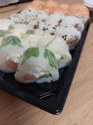 - гарнир: имбирь (25 г), соевый соус (40 мл), васаби (15 г) в подарок!