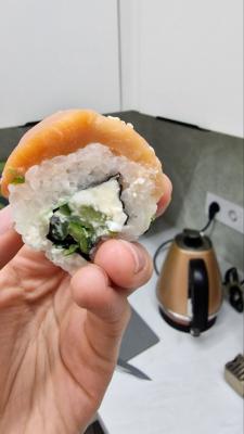 Состав: филе лосося (форели) слабосоленое, авокадо, крем-чиз, рис, нори