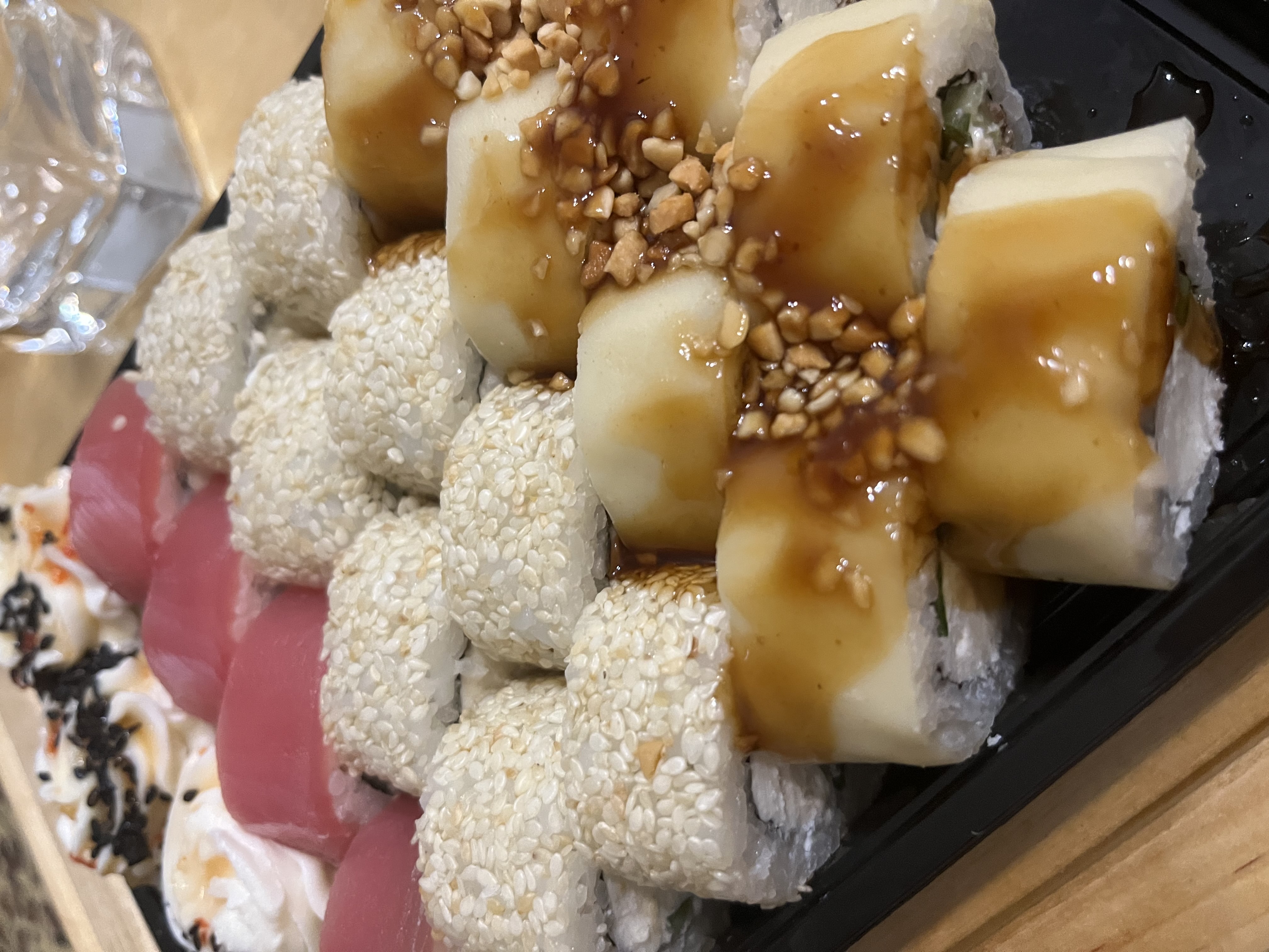 Добрый день! Заказывала здесь впервые, роллы понравились, свежие, рис правильно приготовлен, ДР мужа не был испорчен. Единственное не поняла роллы в кунжуте с лососем и томатом, если внутри консервированный лосось, так и в описании нужно помечать, потому что люди думают, что там либо свежий лосось, либо слабосоленый. Заказывала сет Флори. В целом я довольна, доставка вовремя.