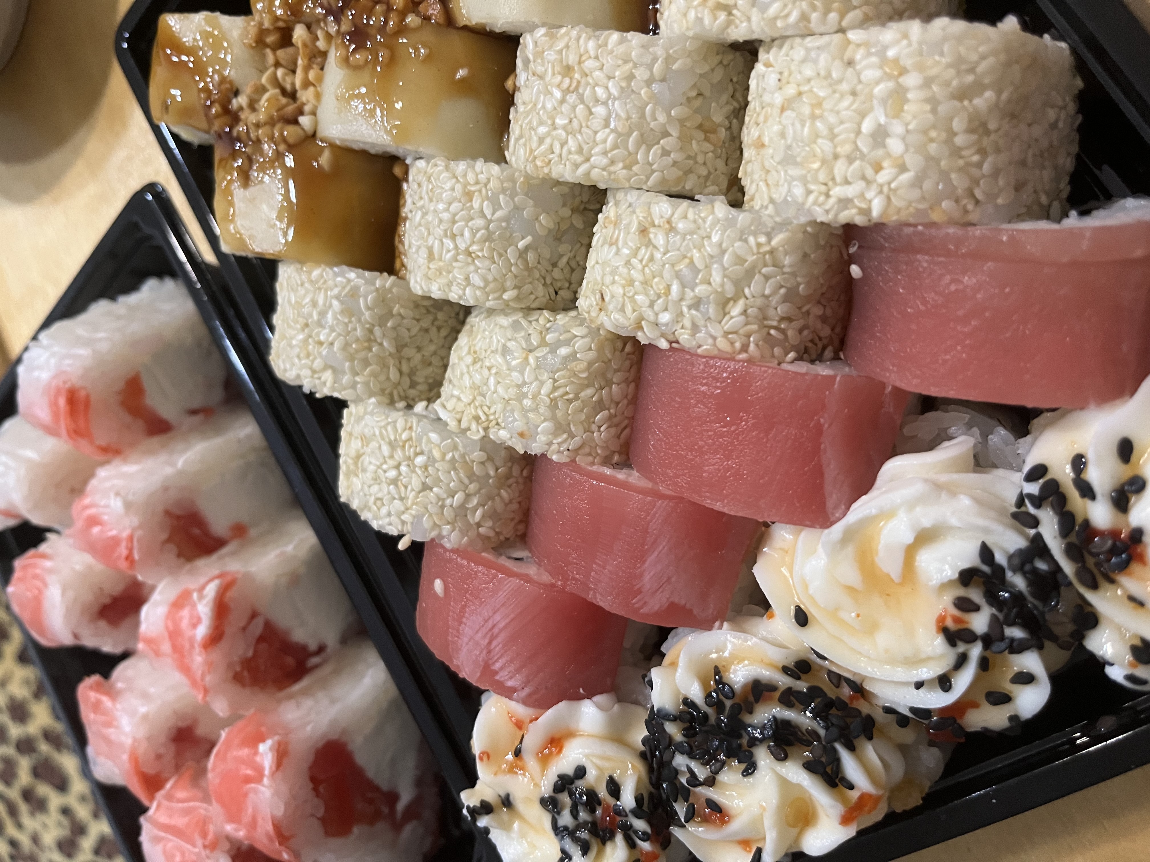 Брали сет Цунами. Роллы свежие, их много - накормить можно минимум троих. Но мне не понравилось, что только в одном виде роллов из пяти слабосоленая рыба, в остальных - консерва/термически обработанная рыба. Но и цена соответствует. В другой раз буду брать другой сет. Интересует - Родос, но опять же из за цены (Родос тоже недорогой сет) не хочется получить роллы с консервированной рыбой