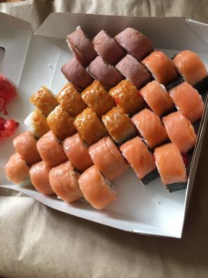 - Промокод дает право на скидку до 65% на суши-сеты от службы доставки "Eda-dostavka"