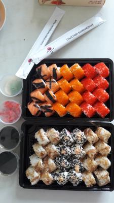 - Промокод дает право на скидку до 65% на суши-сеты от службы доставки "Eda-dostavka"