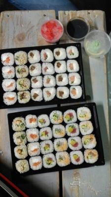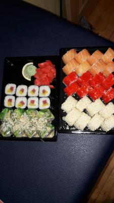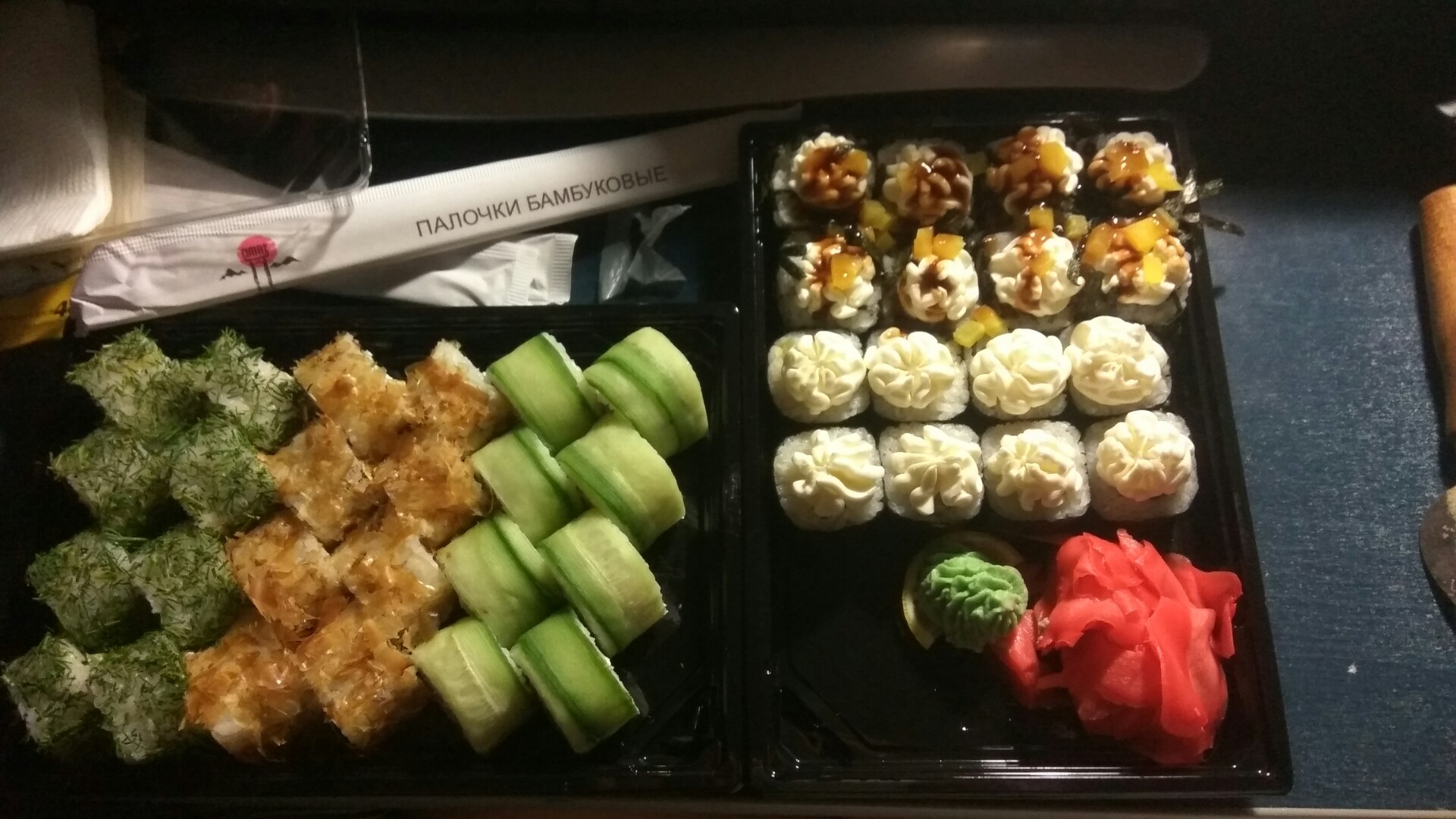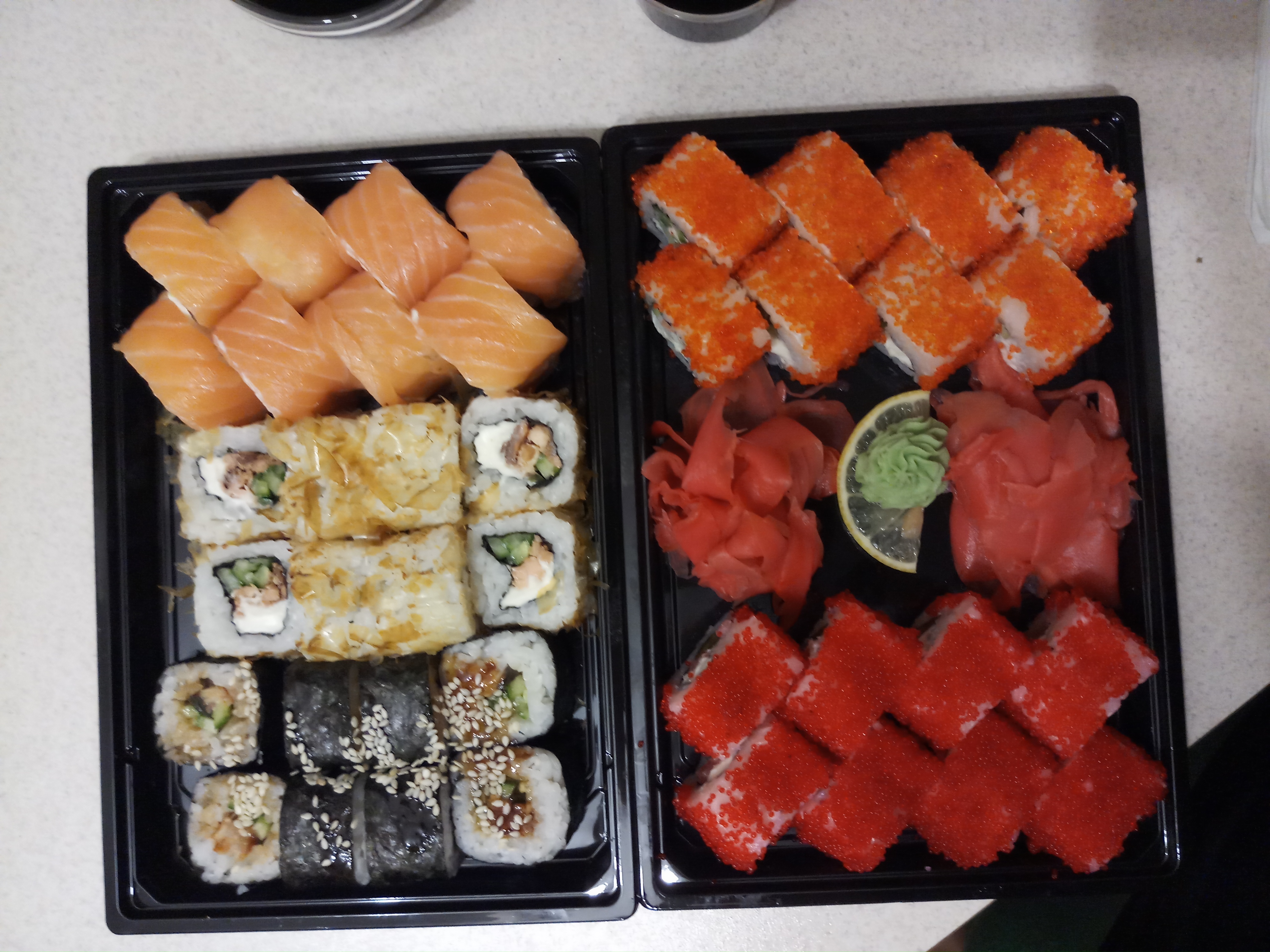 Заказала с подружками - не пожалели) Заказали Сет "Брюгге". Суши вкусные, не разваливаются! В подарок соевый соус, имбирь (на любителя) и васаби) Привезли в течении 2х часов. Очень довольны - спасибо большое:)