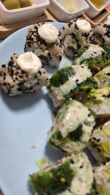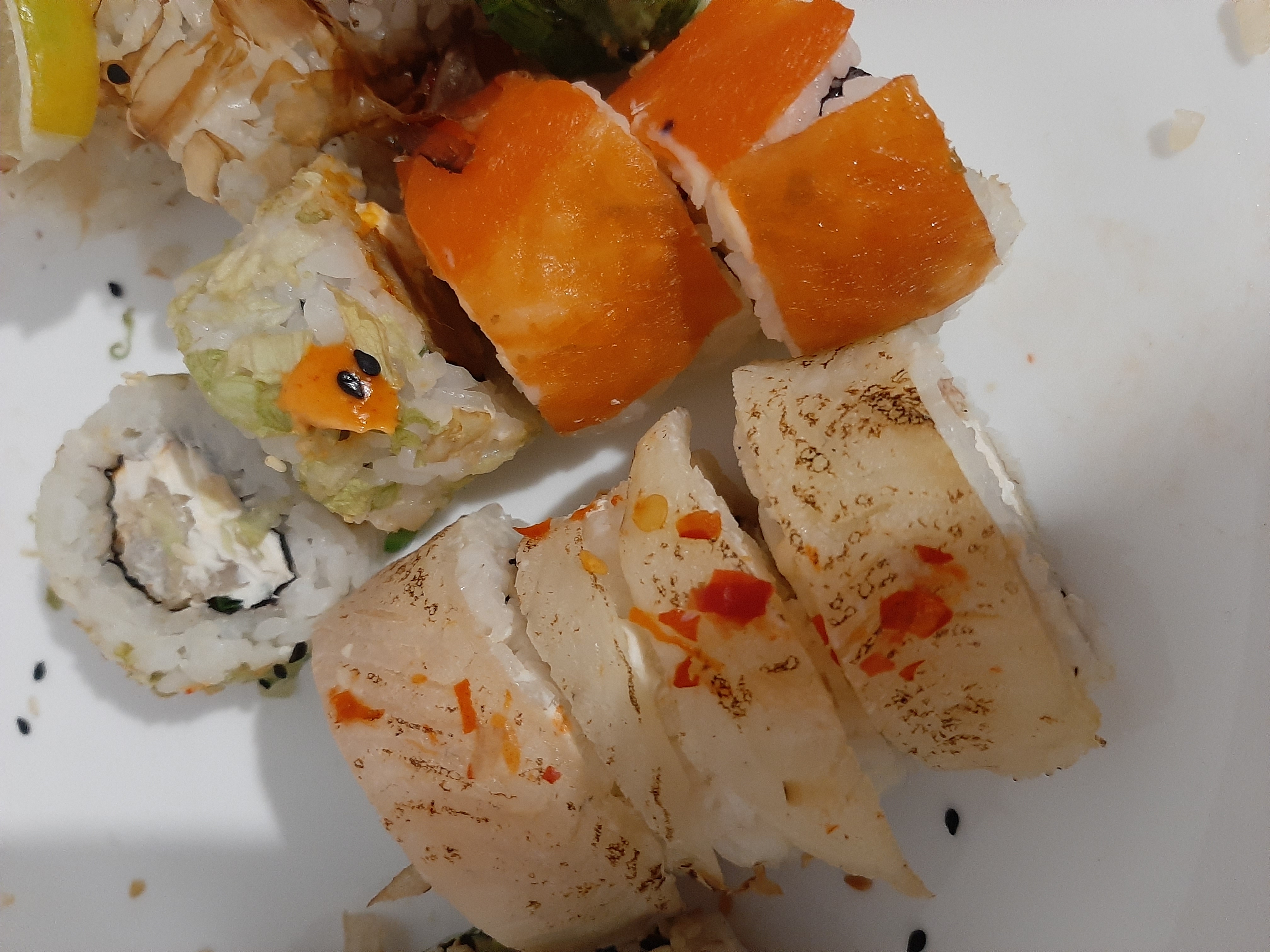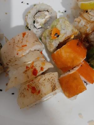 Суши очень вкусные , рыбы много. Может немного был не презентабельный вид ,но мне кажется из-за большого количества заказов под новый год и из-за того ,что доставка , мне кажется навынос вообще пушка ) спасибо большое))