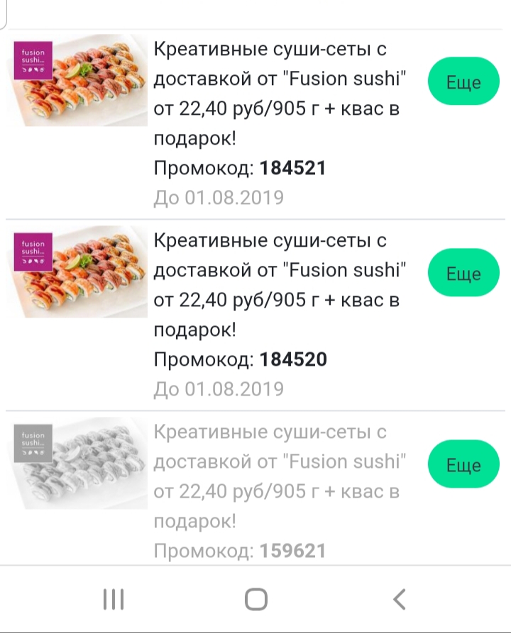- Промокод дает право на скидку до 76% на суши-сеты от "Fusion sushi"