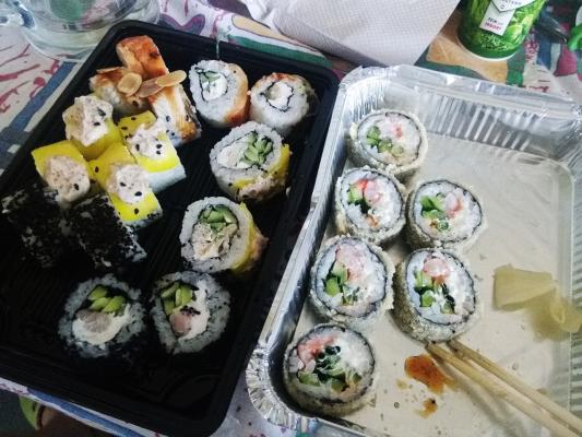 Заказывали Токио сет 19. Суши свежие и вкусные, рис очень правильной консистенции, с начинкой тоже всё в поряде) порадовал большой объём соевого соуса! Доставка была быстрая. Никаких проблем не было.